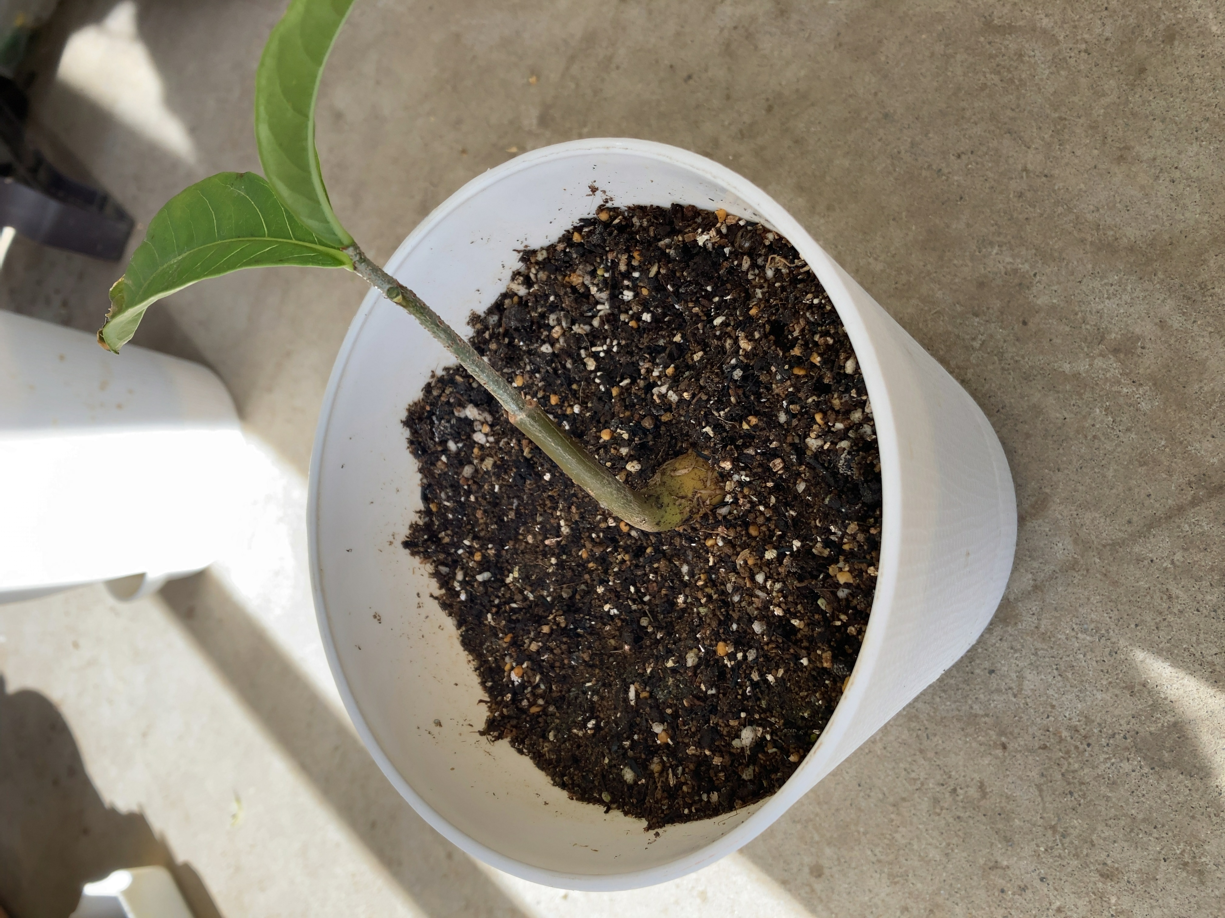 ティッシュの上で湿らせて発芽させ、培養度に植えました。寒さと虫食いで少し元気がないですが、根本が太くなってきています。
