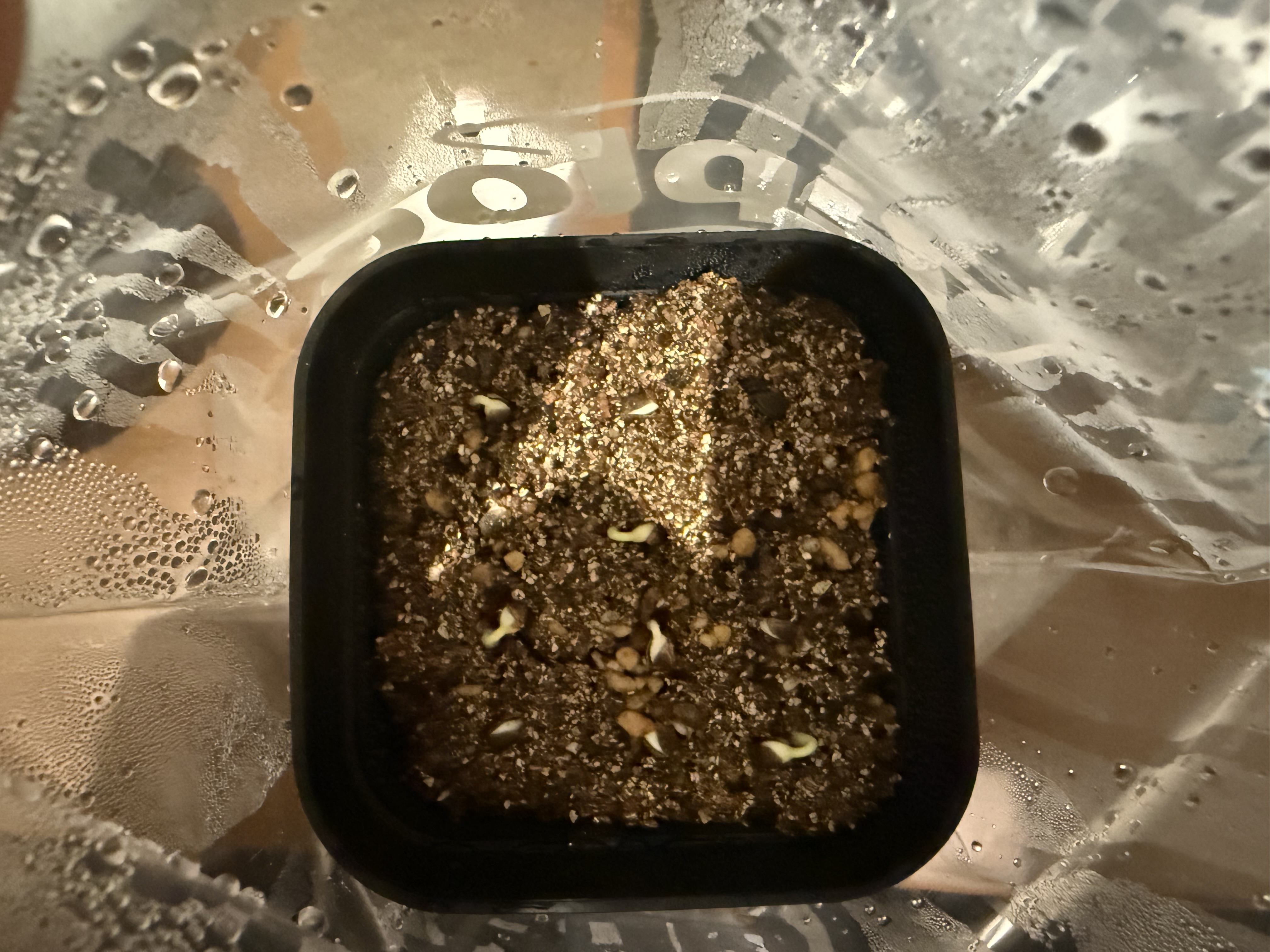 [ 播種日 / 撮影日 ]例: 2024/11/28播種 2024/12/3撮影[ 播種数 / 発芽数 ]例: 12粒/ 10粒[ その他(用土や管理方法など)]播種前にダコニール+メネデール溶液に一晩浸漬多肉植物培養土に細目のバーミキュライトを敷き播種、ジップロックで20度〜25度で管理