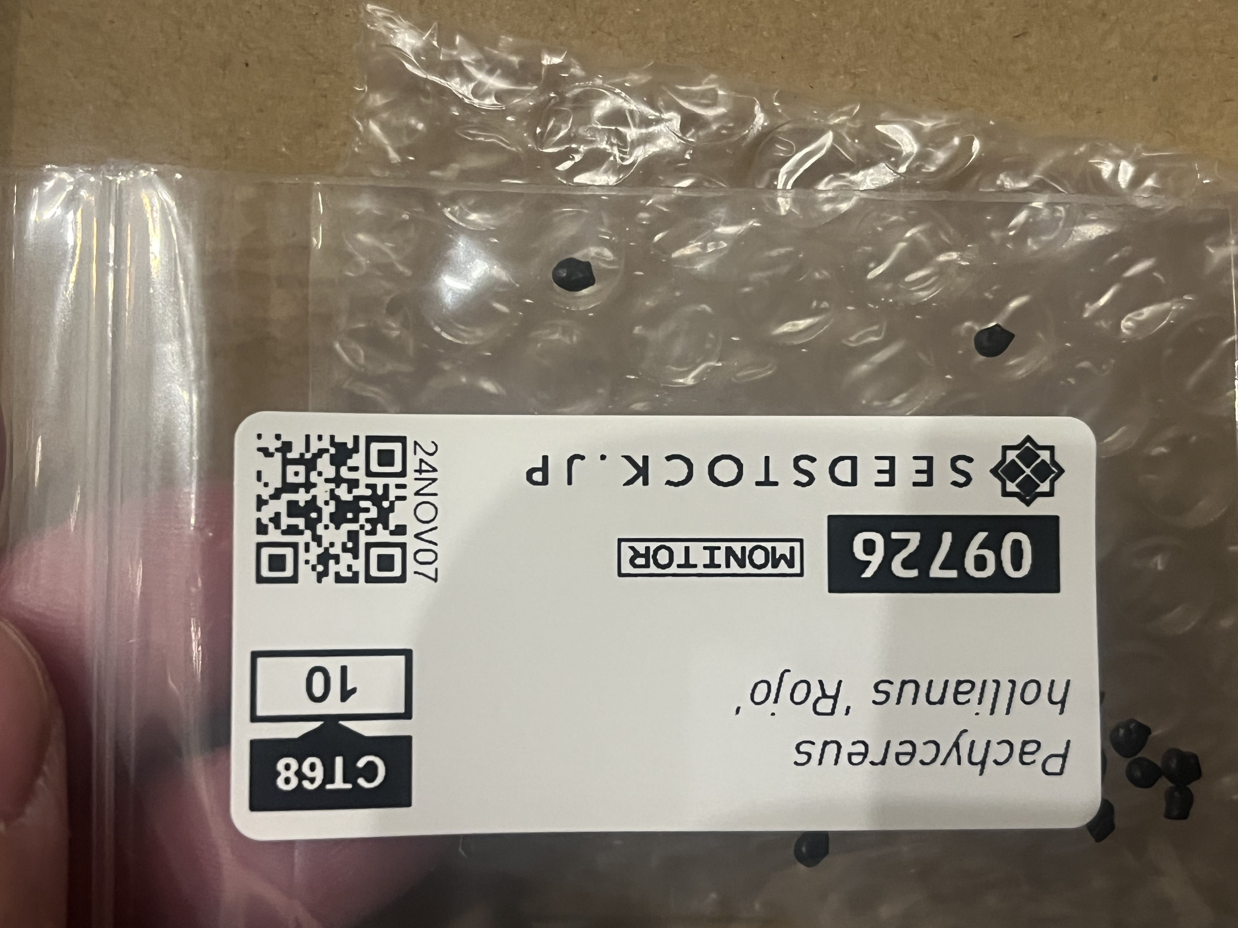 [ 播種日 ]2024/12/23播種 [ 播種数 ]10粒播種前にダコニール溶液に1日程度浸漬中赤玉メインの用土に細目を敷き播種、20度で管理中です。