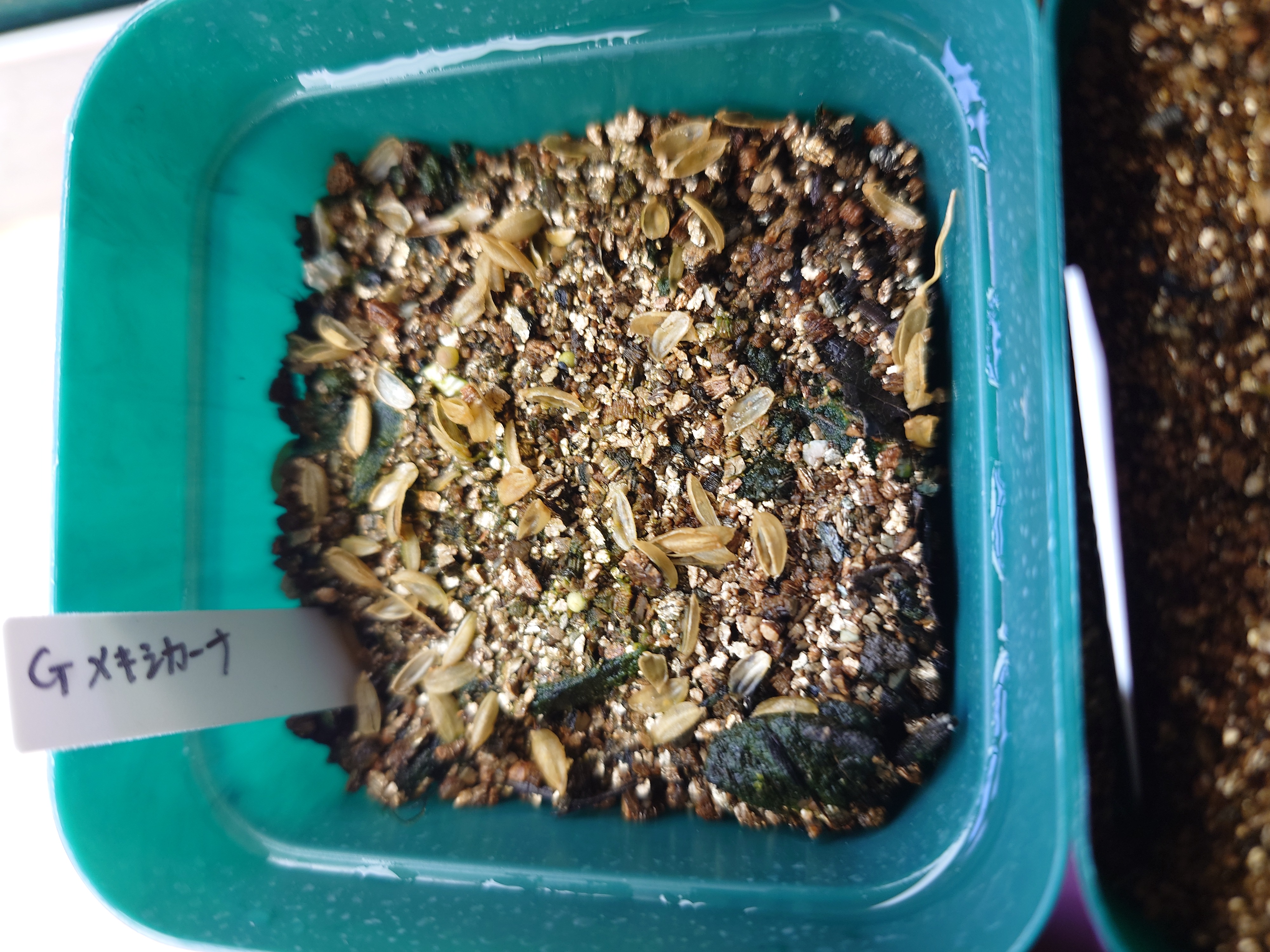 ・播種した種は、 バーミキュライトで薄く覆土し、籾殻を軽く撒いたり撒かなかったり。
