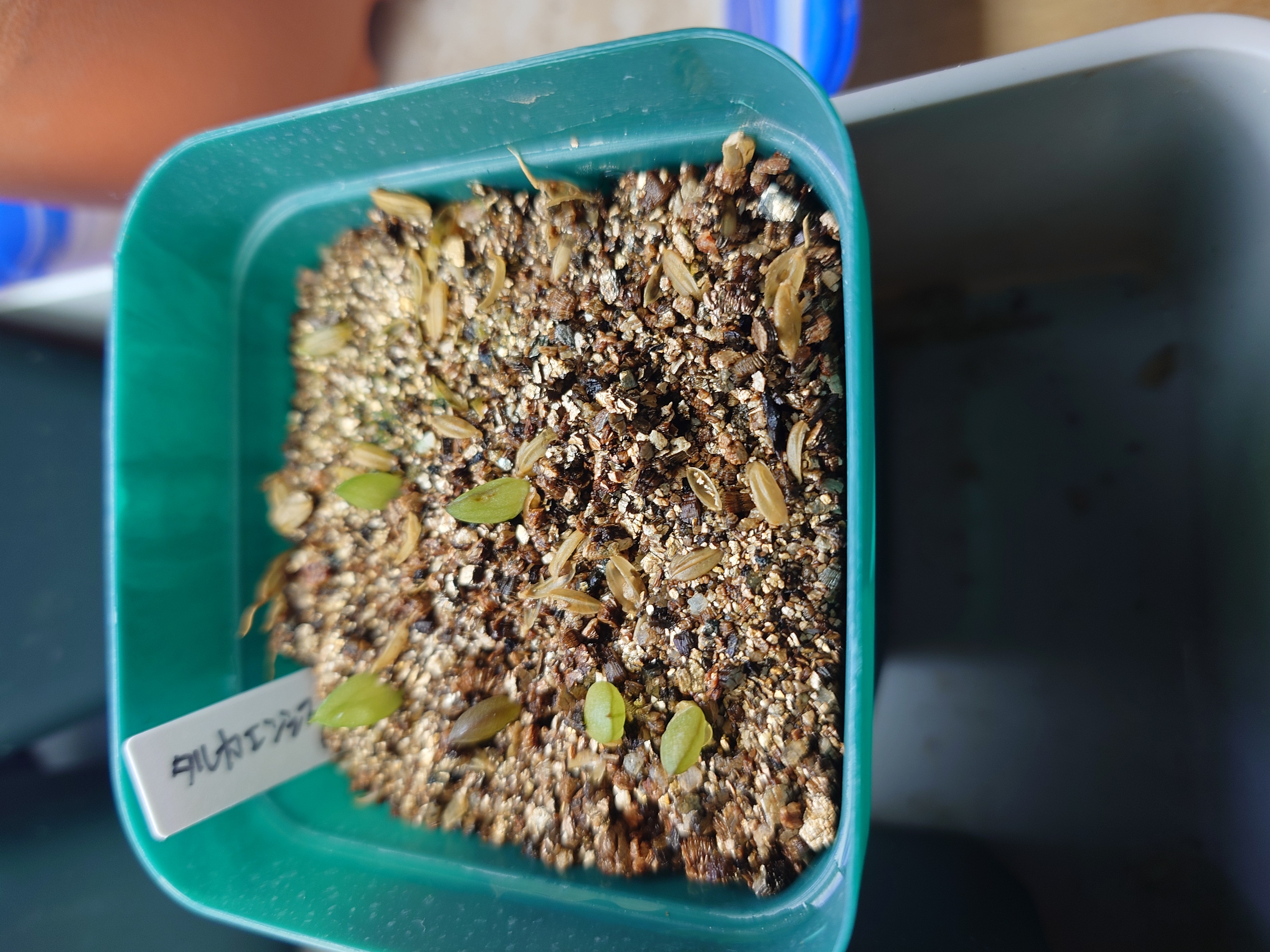 ・播種した種は、 バーミキュライトで薄く覆土し、籾殻を軽く撒いたり撒かなかったり。