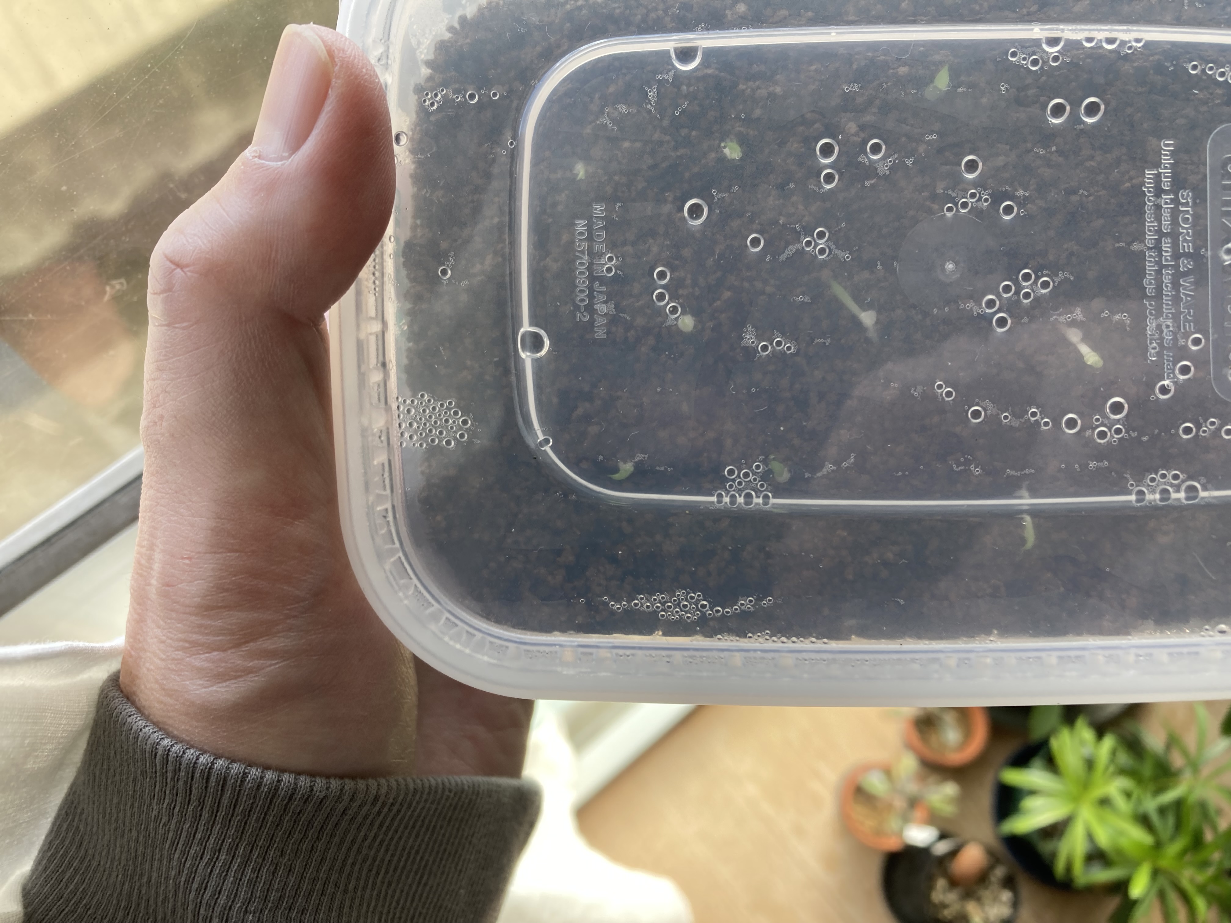13粒/ 9粒[ その他(用土や管理方法など)]タッパー基底に日向土を敷きメインは芝の目土。日向土が浸るくらいに全体を湿らせた後、蓋と共に鍋で蒸して殺菌。冷めたらカビキラーで殺菌した種子を覆土せず配置。蓋を閉め密封状態で15℃以上の環境で放置、数日後から発芽始まる。まだ封印は解いていない。