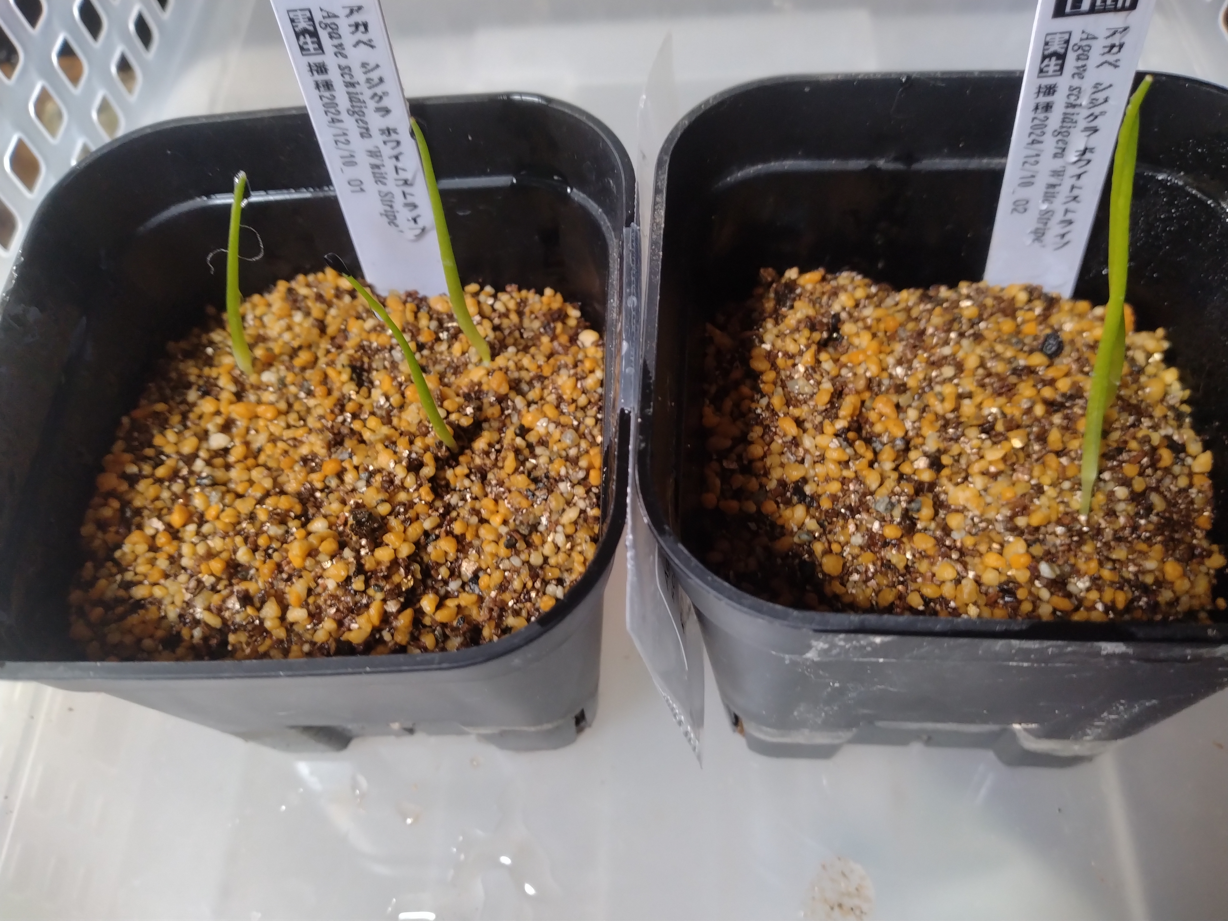用土:下層「赤玉・鹿沼・軽石(各小粒)」上層「鹿沼細粒+バーミキュライト」に播種、