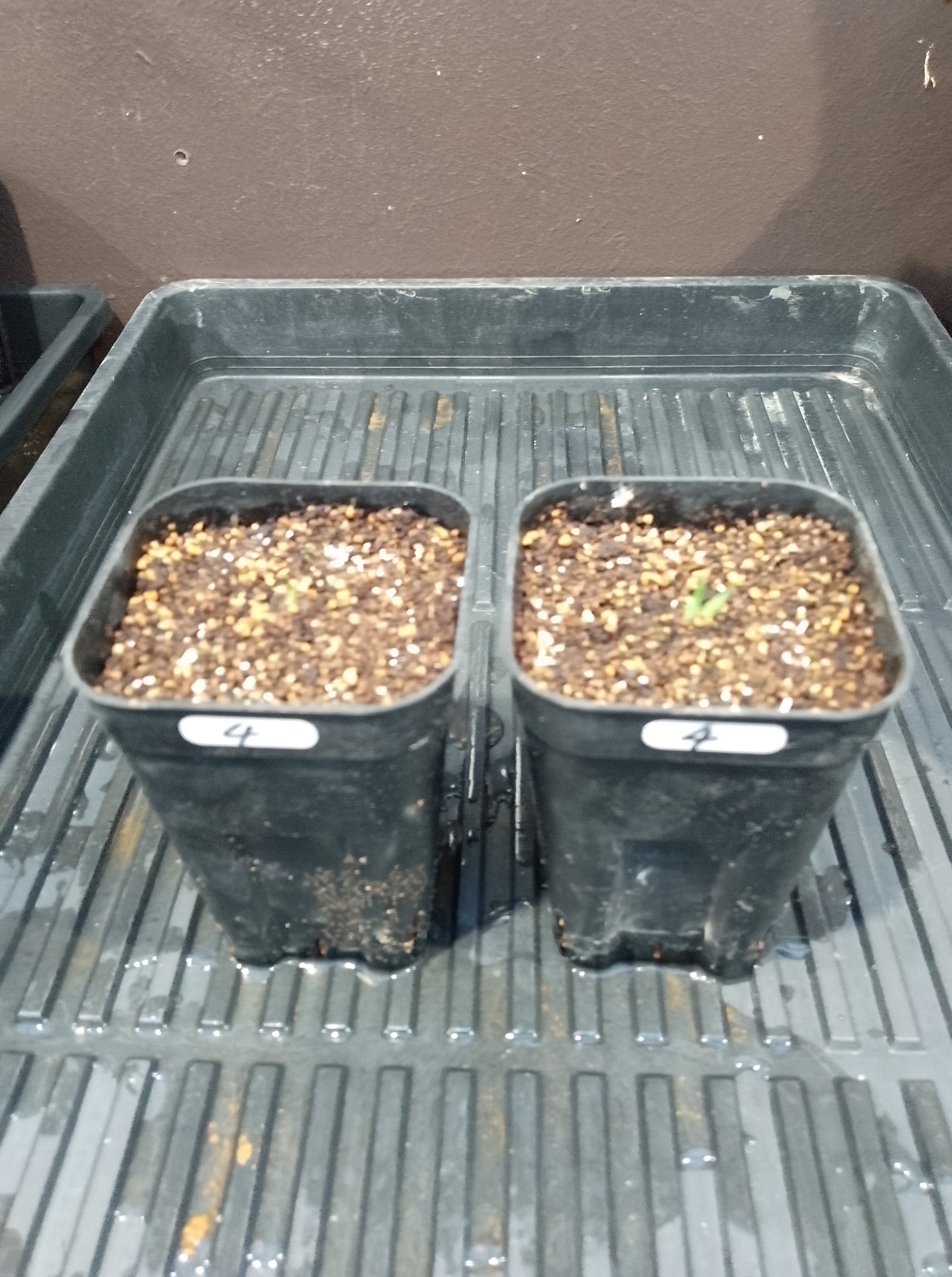 [ 播種日 / 撮影日 ] 2024/11/14播種 2025/2/2撮影 [ 播種数 / 発芽数 ] 22粒/11粒 [ その他(用土や管理方法など)] 播種前にダコニール+メネデール溶液に半日程度浸漬 赤玉土と鹿沼土ブレンド用土に播種 25度〜30度で管理 発芽率は50%だったが、その後の成長があまり良くなかった。 現在残っているのは2株だけになってしまった。
