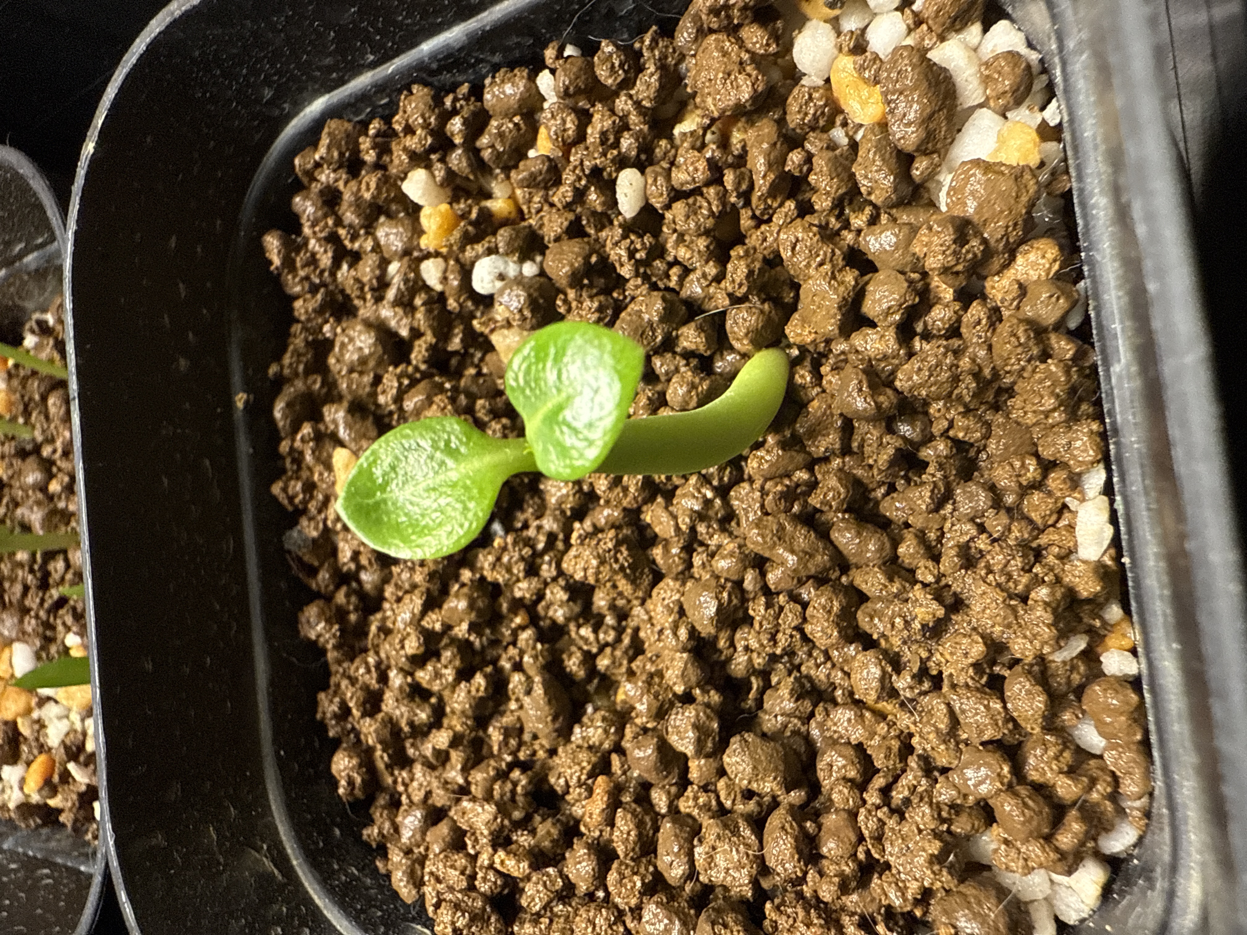 到着時やや不安な色をした種でしたが1つでも元気に発芽してくれてよかったです☺️