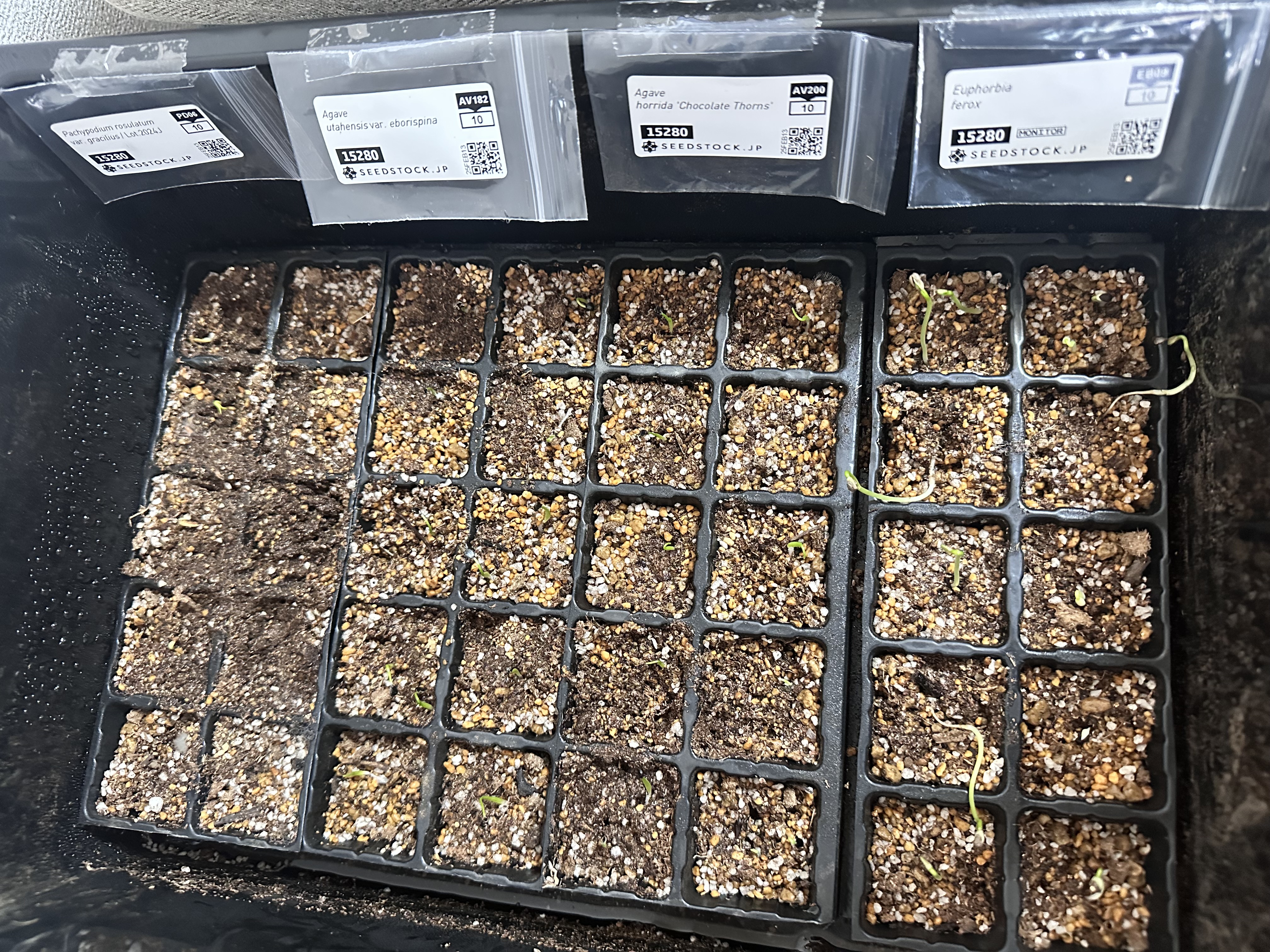 さい。[ 播種日 / 撮影日 ]2025/2/19播種 2025/3/1撮影[ 播種数 / 発芽数 ]例: 15粒程/ 12粒[ その他(用土や管理方法など)]播種前にメネデール溶液に1日程度浸漬ホームセンター購入の種まき用土で、腰水(メネデール水)管理、気温20度前後で管理