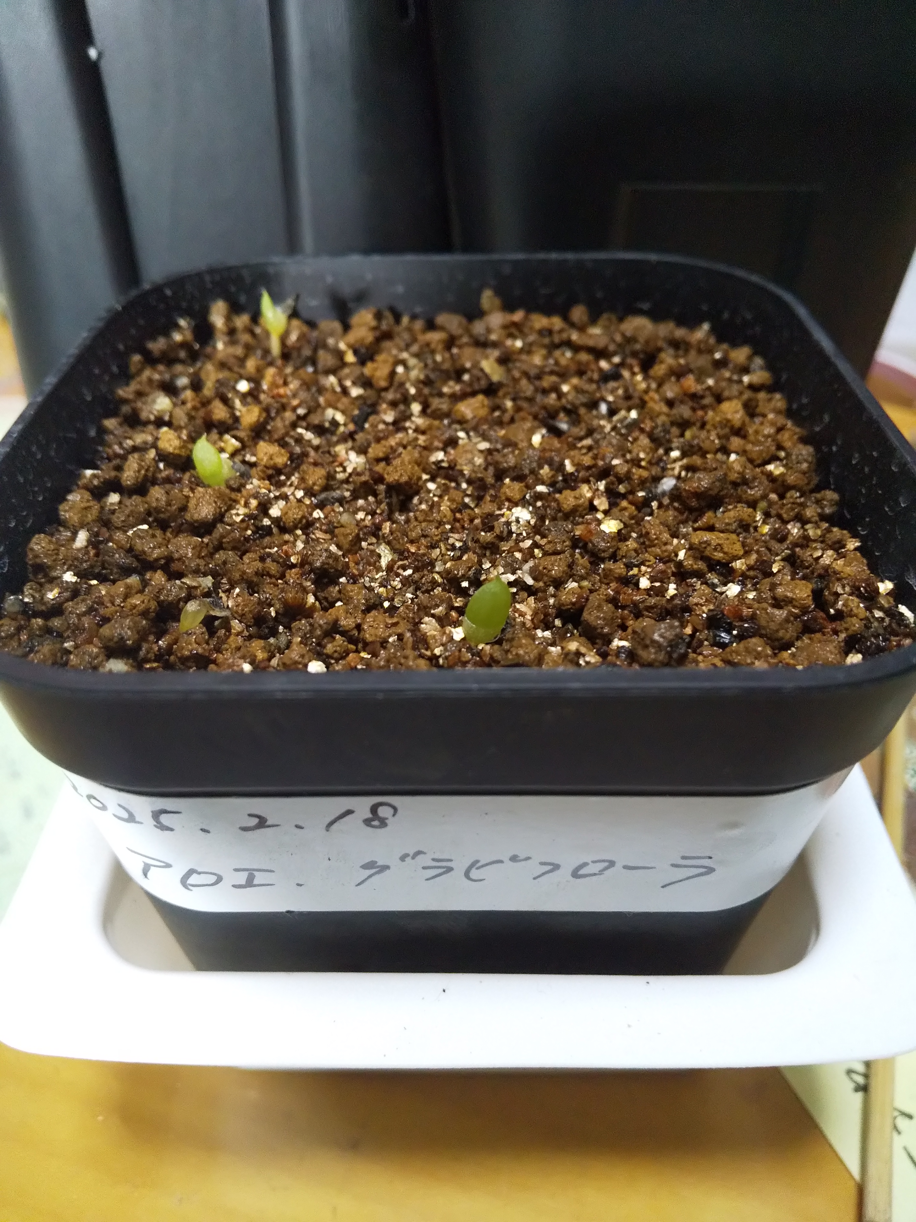 [ 播種日 / 撮影日 ] 2025/2/18播種 2025/3/1撮影 [ 播種数 / 発芽数 ] 12粒/ 4粒 [ その他(用土や管理方法など)] 播種前に羽根を外し、ベンレート+メネデール溶液に1日浸漬、 赤玉1・バーミキュライト1の用土に播種、軽く覆土しました。20度〜25度でカビ予防しつつ腰水管理