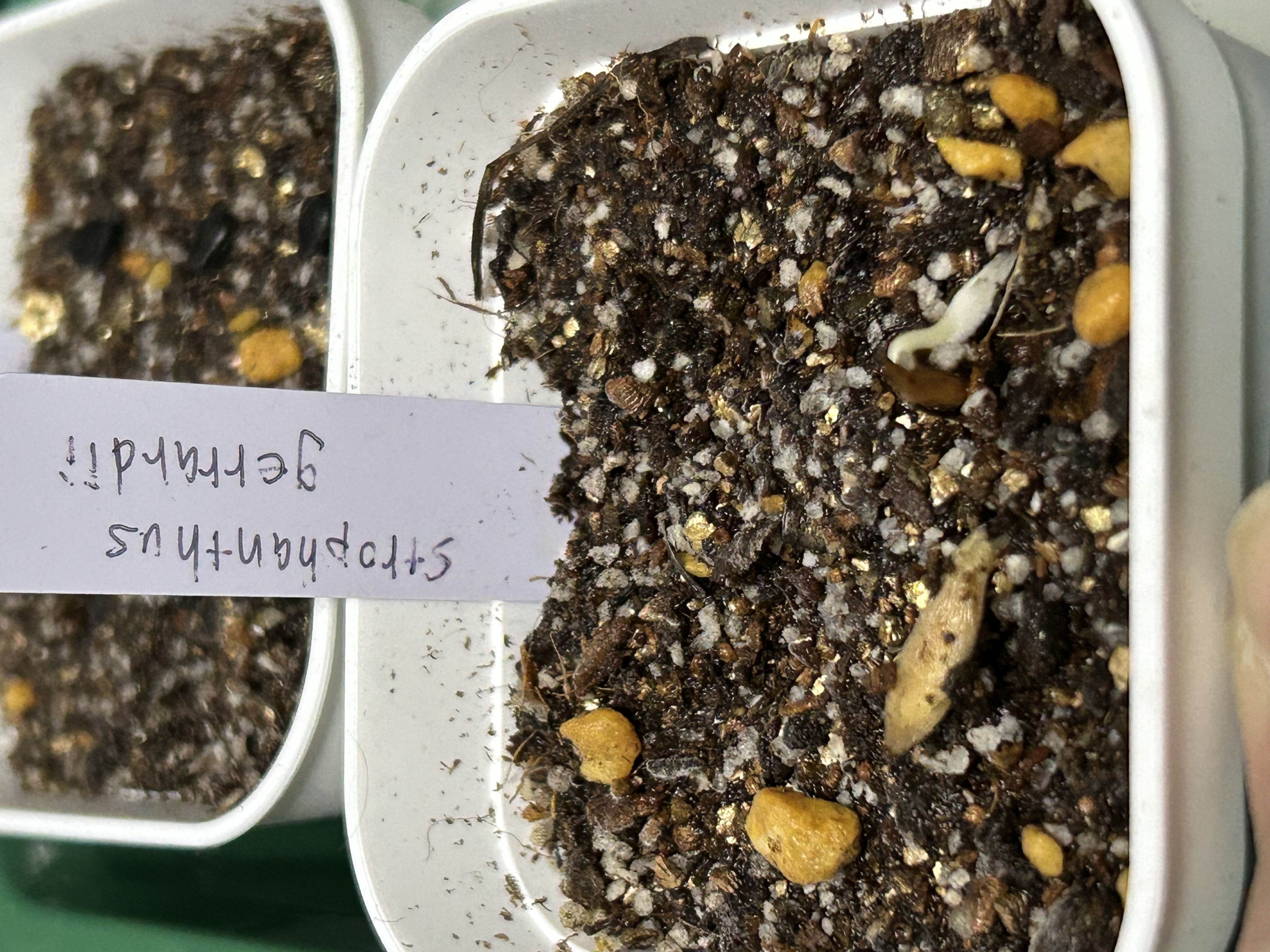 様子見で4粒播種して2粒が発芽、もう2粒はカビにやられました