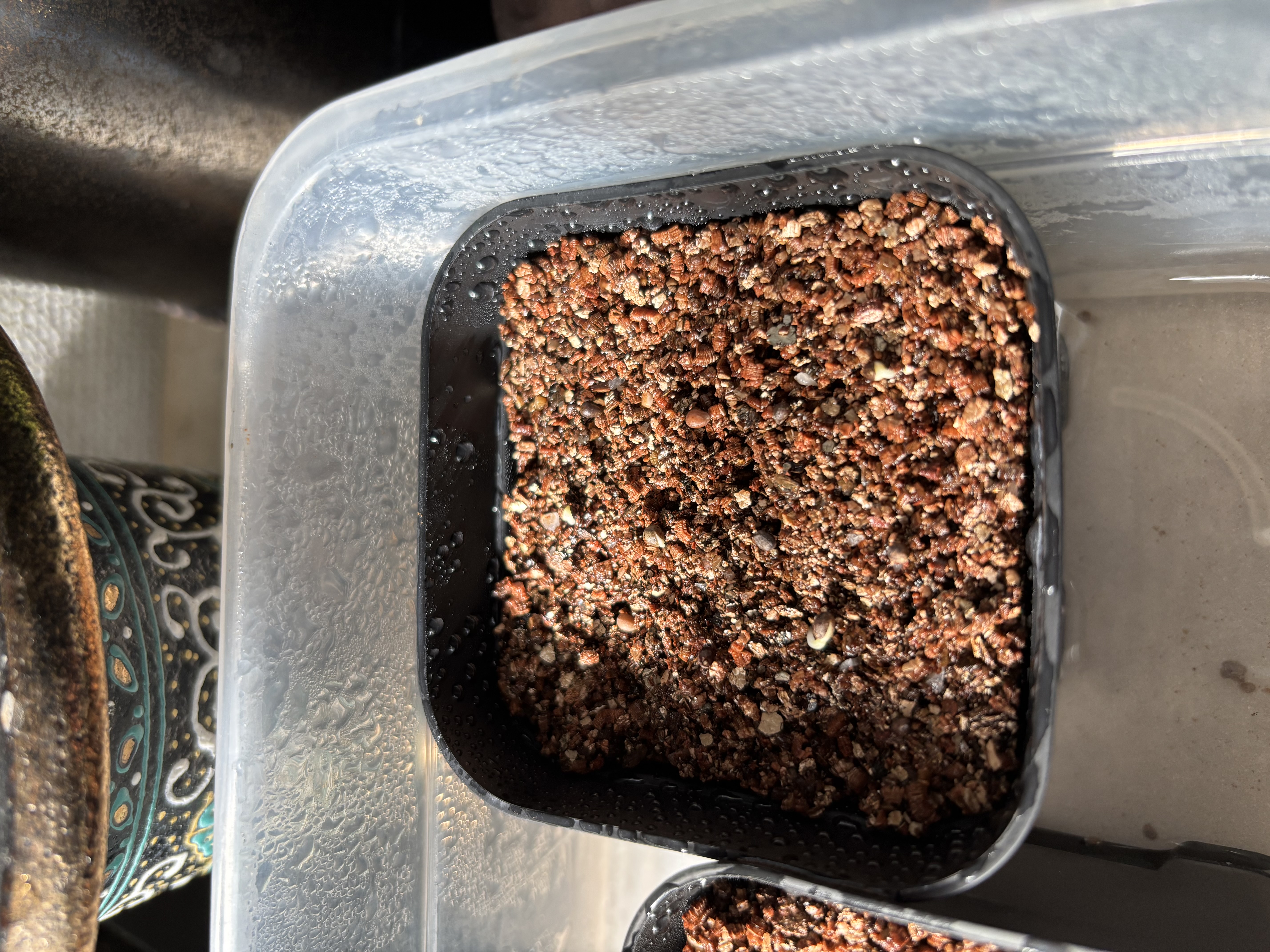 [ 播種日 / 撮影日 ]2025.3.16播種 /2025.3.17撮影[ 播種数 / 発芽数 ] 12粒/ 4粒[ その他(用土や管理方法など)]播種前にダコニール+メネデール溶液に10H程度浸漬小粒の赤玉、軽石1:1の用土に細目のバーミキュライトを敷き播種。