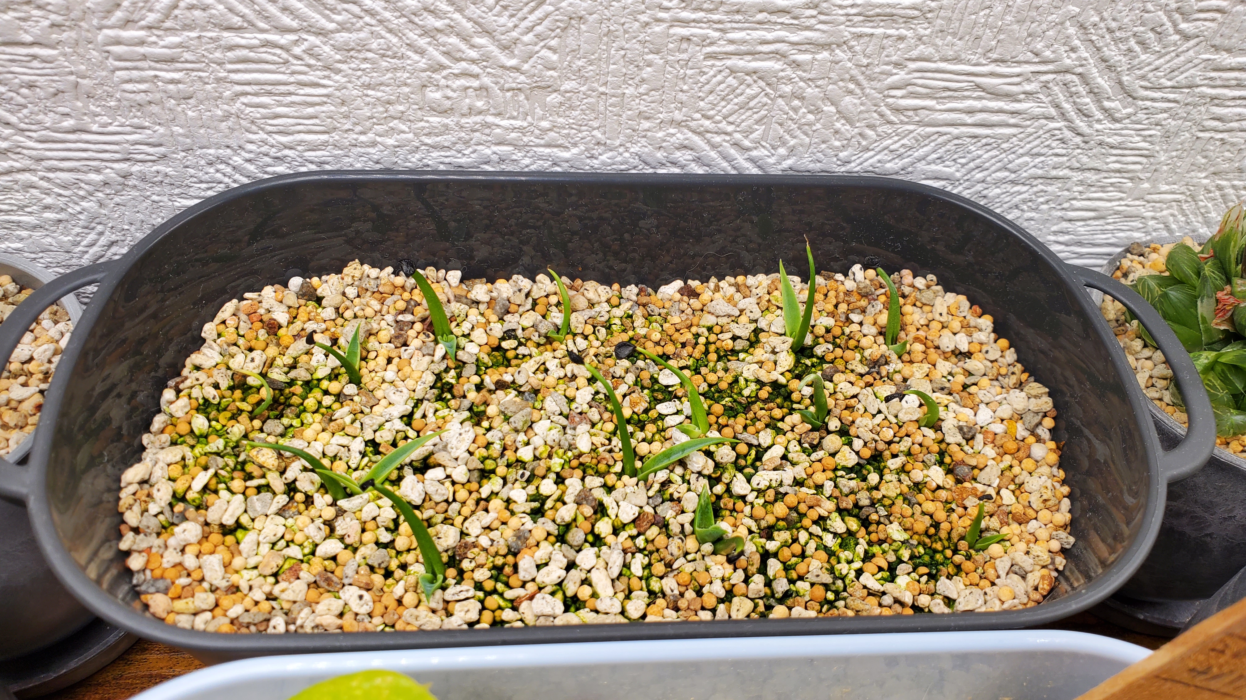DCMのサボテン多肉植物の土に播種、温度は20~25度で管理。