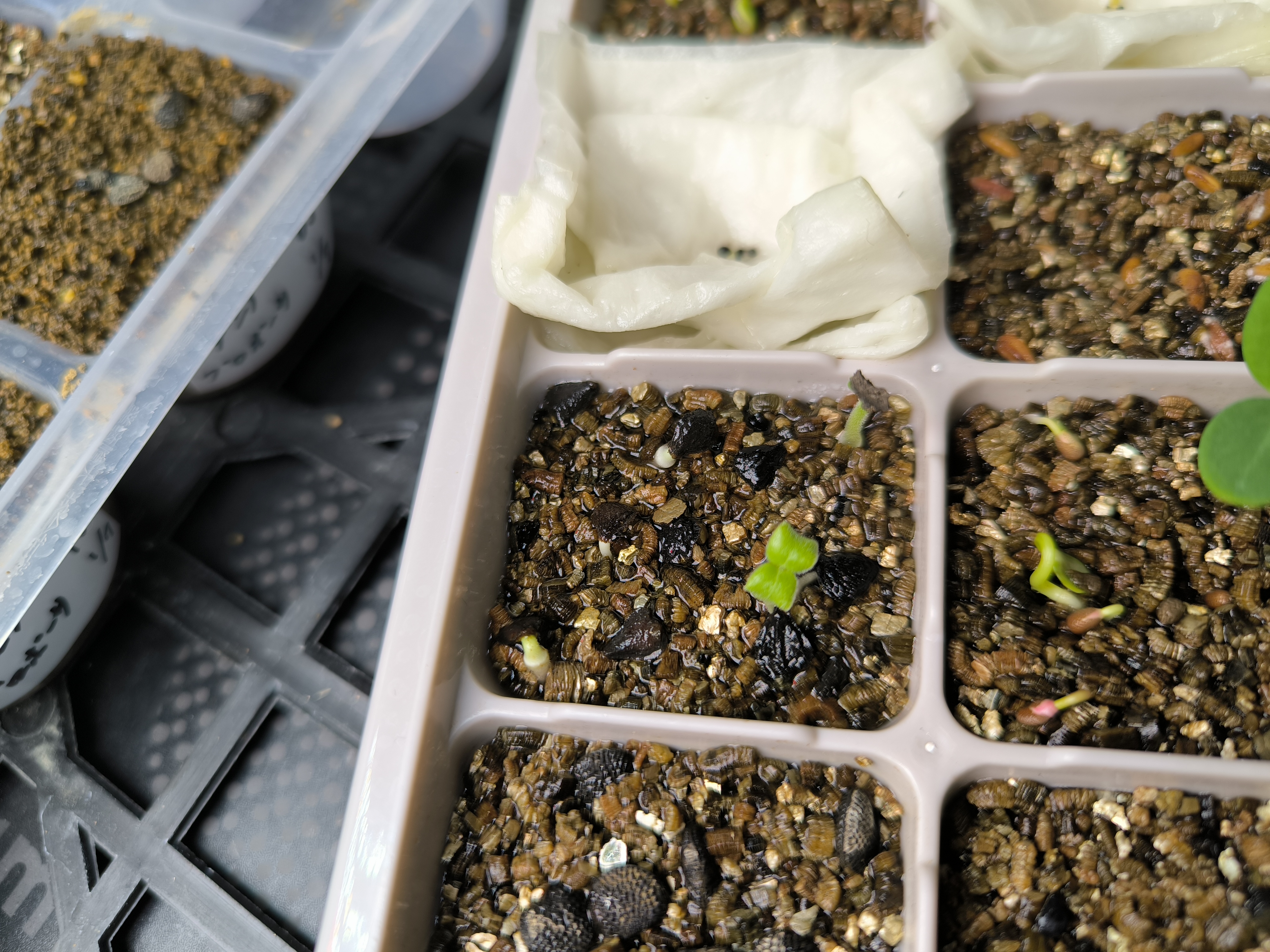 ダイソーの製氷皿にバーミキュライトを敷いて播種(覆土、保湿カバー無し)。