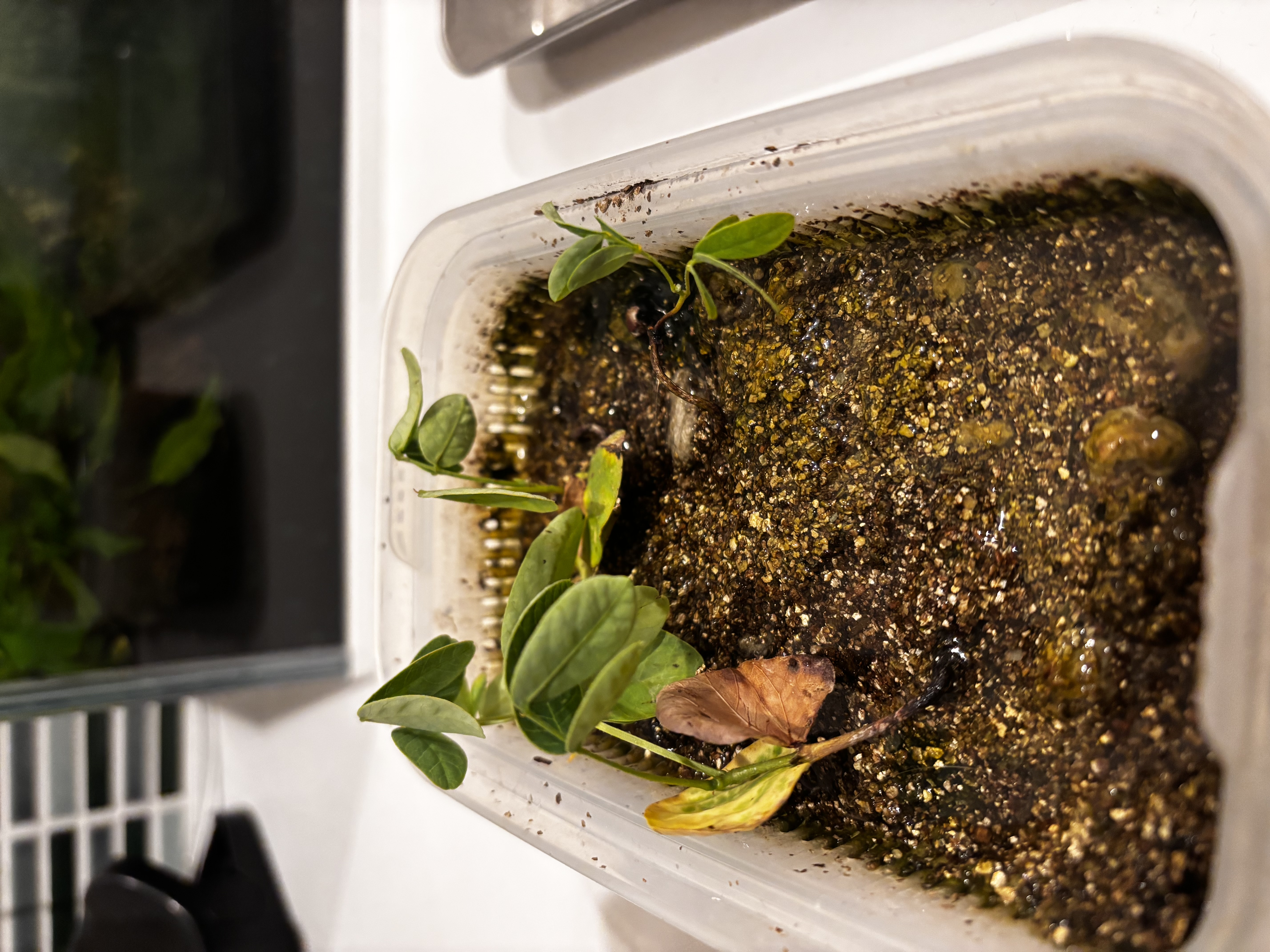 赤玉小粒メインの用土に上層を細目のバーミキュライトを敷き播種
