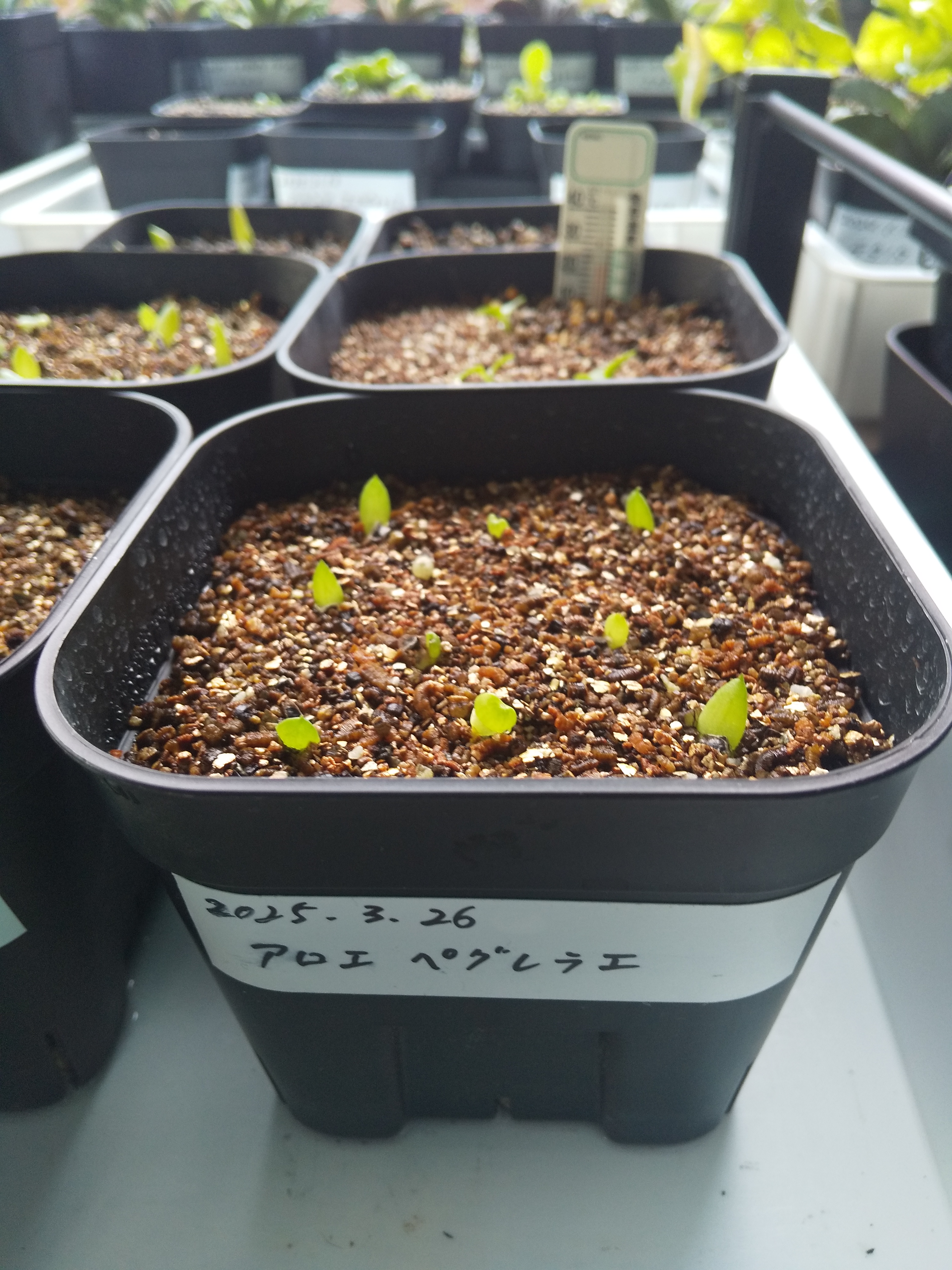 赤玉メインの用土に細目のバーミキュライトを敷き播種、20度〜25度で管理
