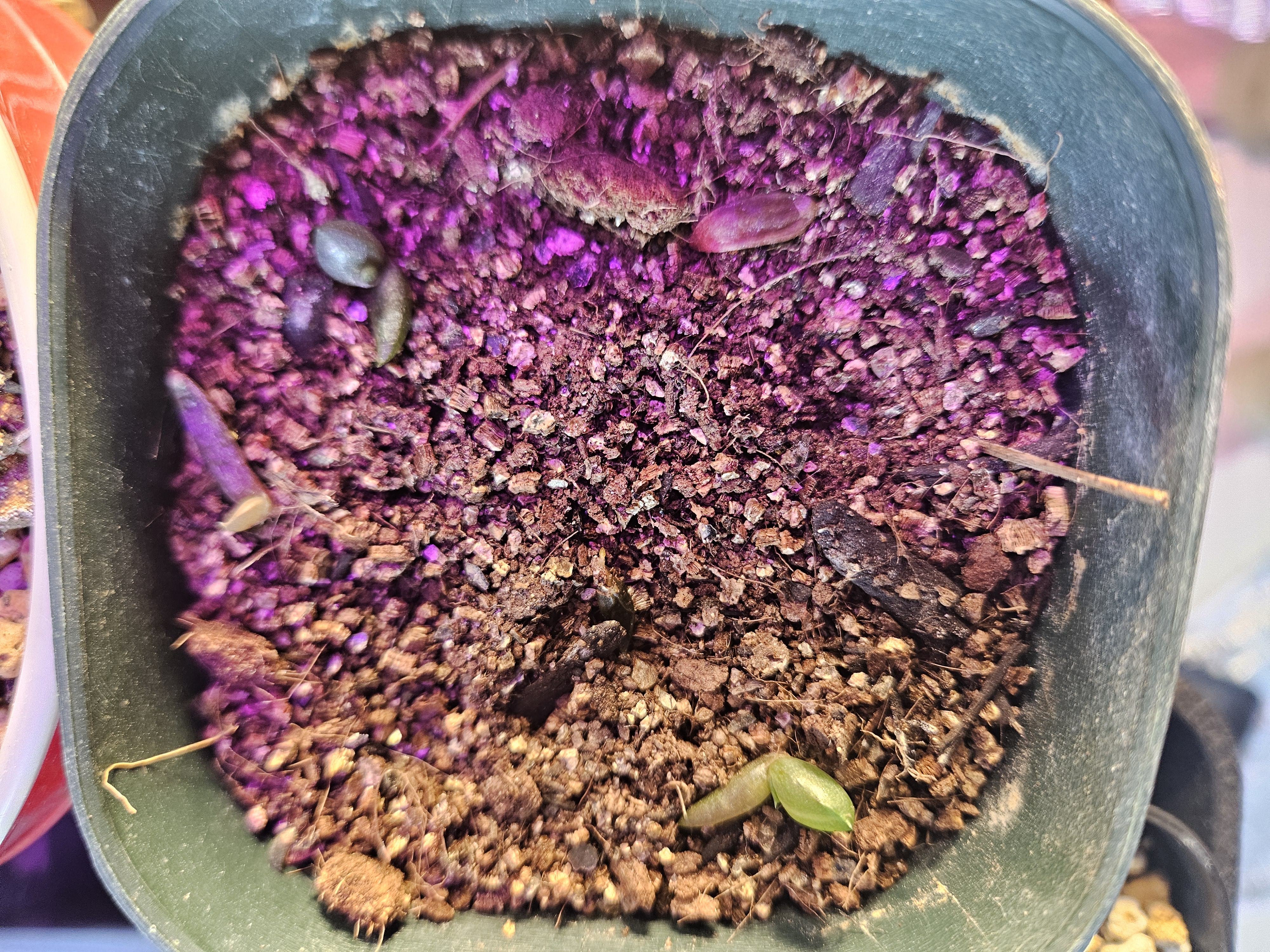 発芽までプレステラをタッパーに入れ、蓋を閉めて室内にて腰水管理。ある程度発芽したら蓋を外して腰水。現在は乾いたら水やり。たまに液肥+活力剤