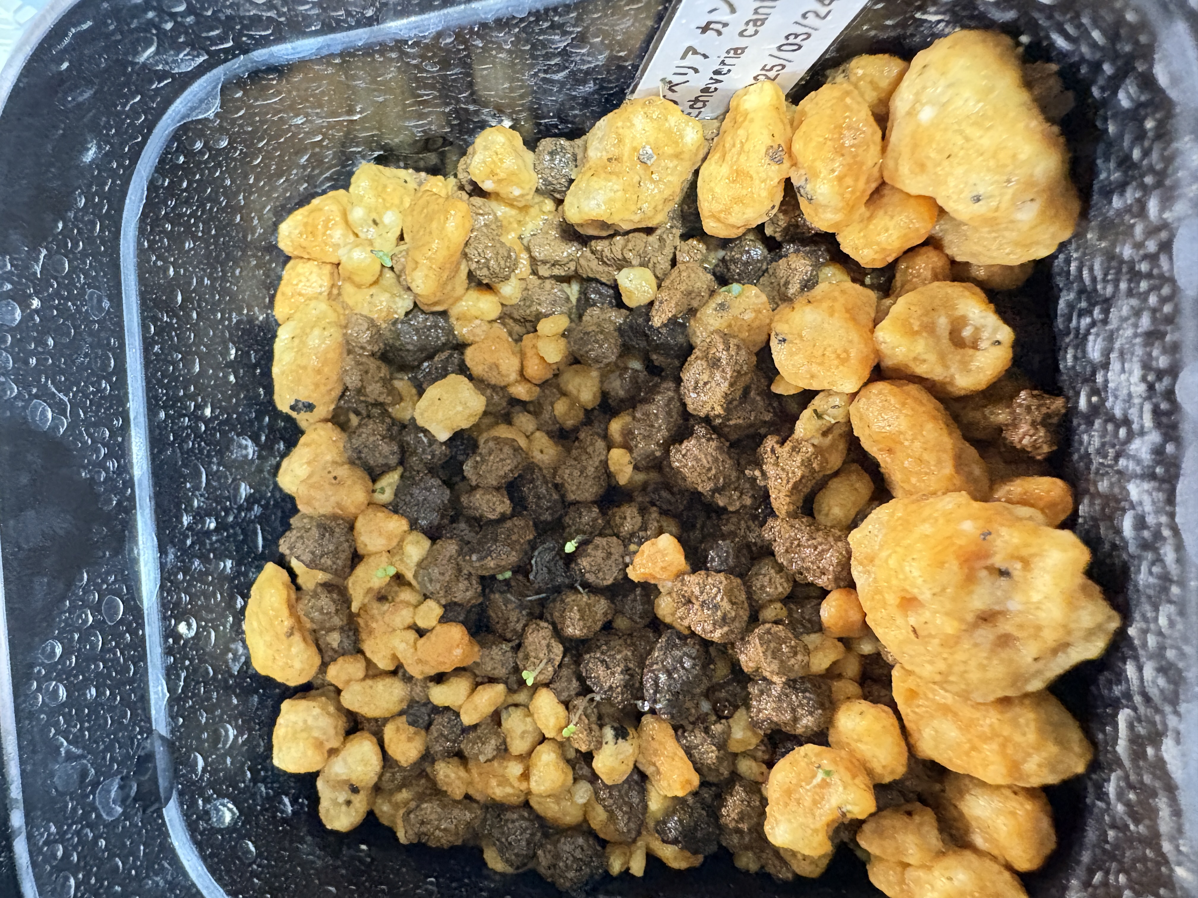 赤玉土1と鹿沼土1を混ぜた土を使用し、ベンレート希釈液を腰水と霧吹きで与えました。