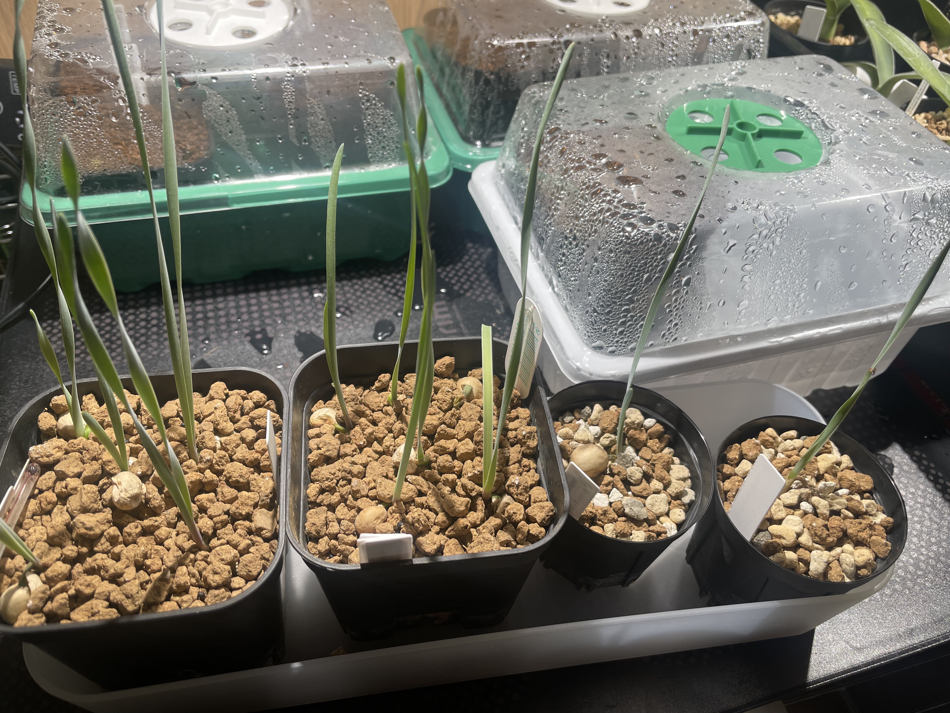 24/3/7 発根が進んでいた。赤玉単用、または無機培養土に播種。腰水、蓋なし、加温あり(25℃ほど)、育成ライト有り、