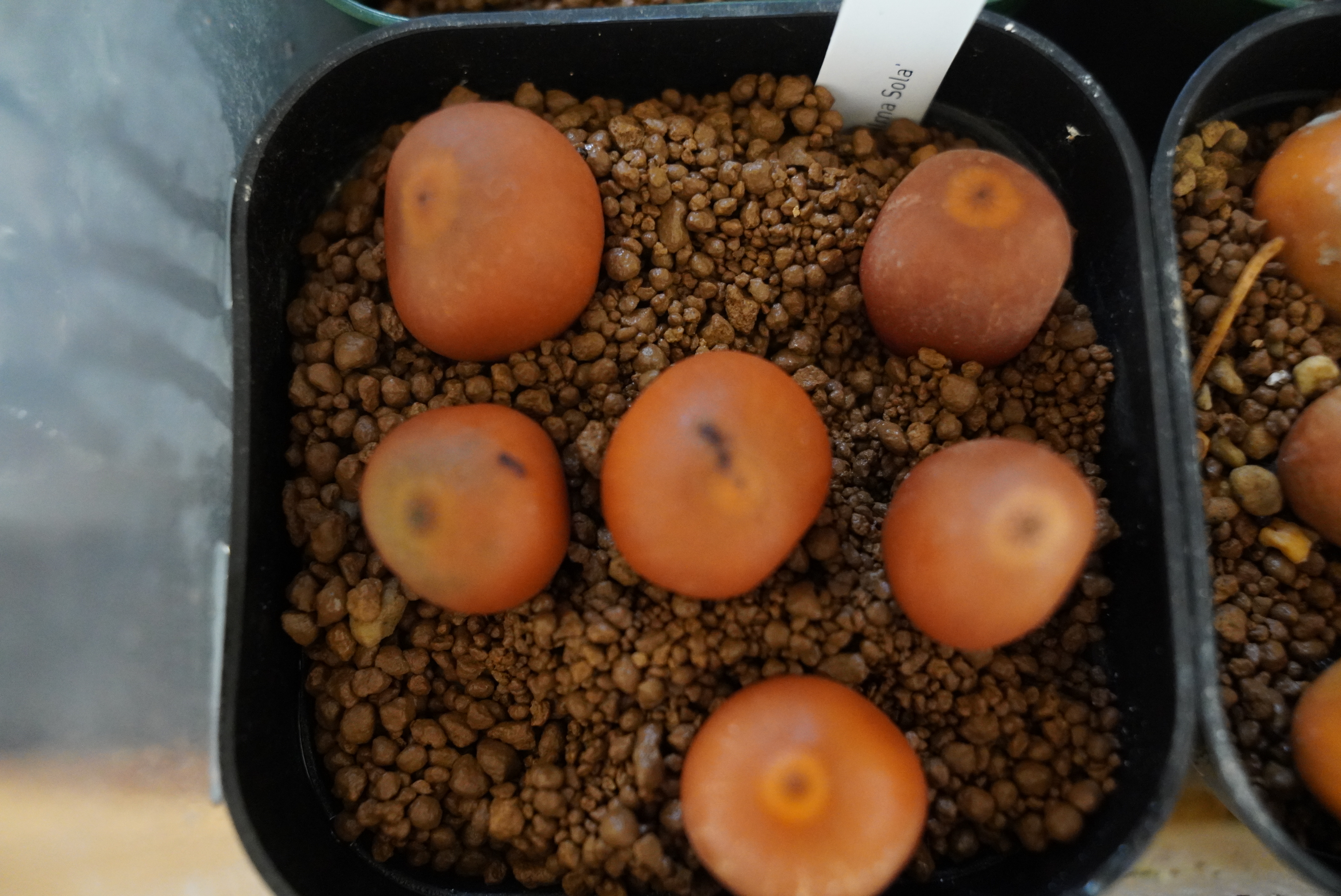 腰水、ヒートマットつけで管理。密閉し、表面には赤玉小粒をしく。