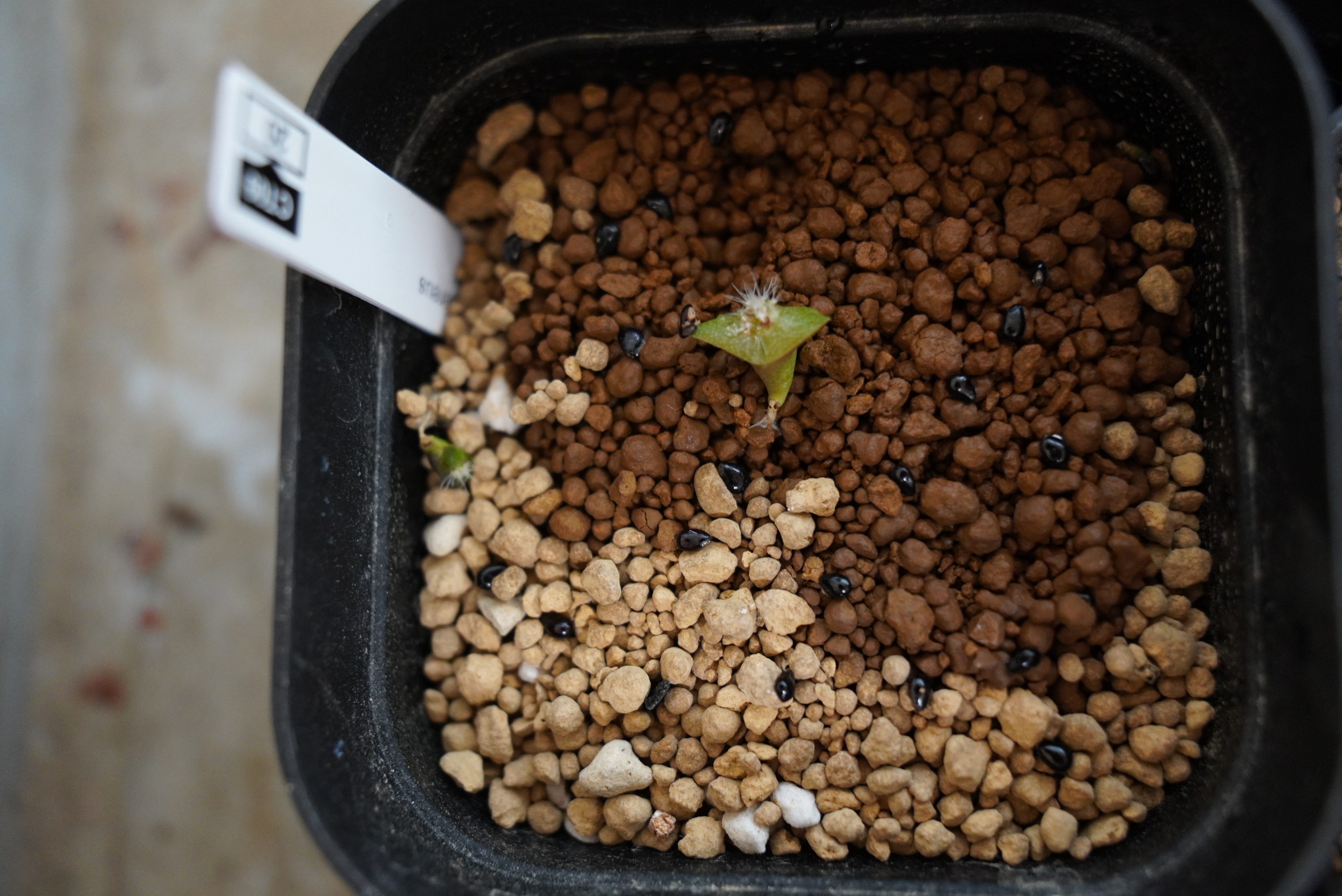 腰水、窓際で管理。密閉し、表面には赤玉小粒をしく。はじめはヒートマットを敷いていましたが、途中でやめました。