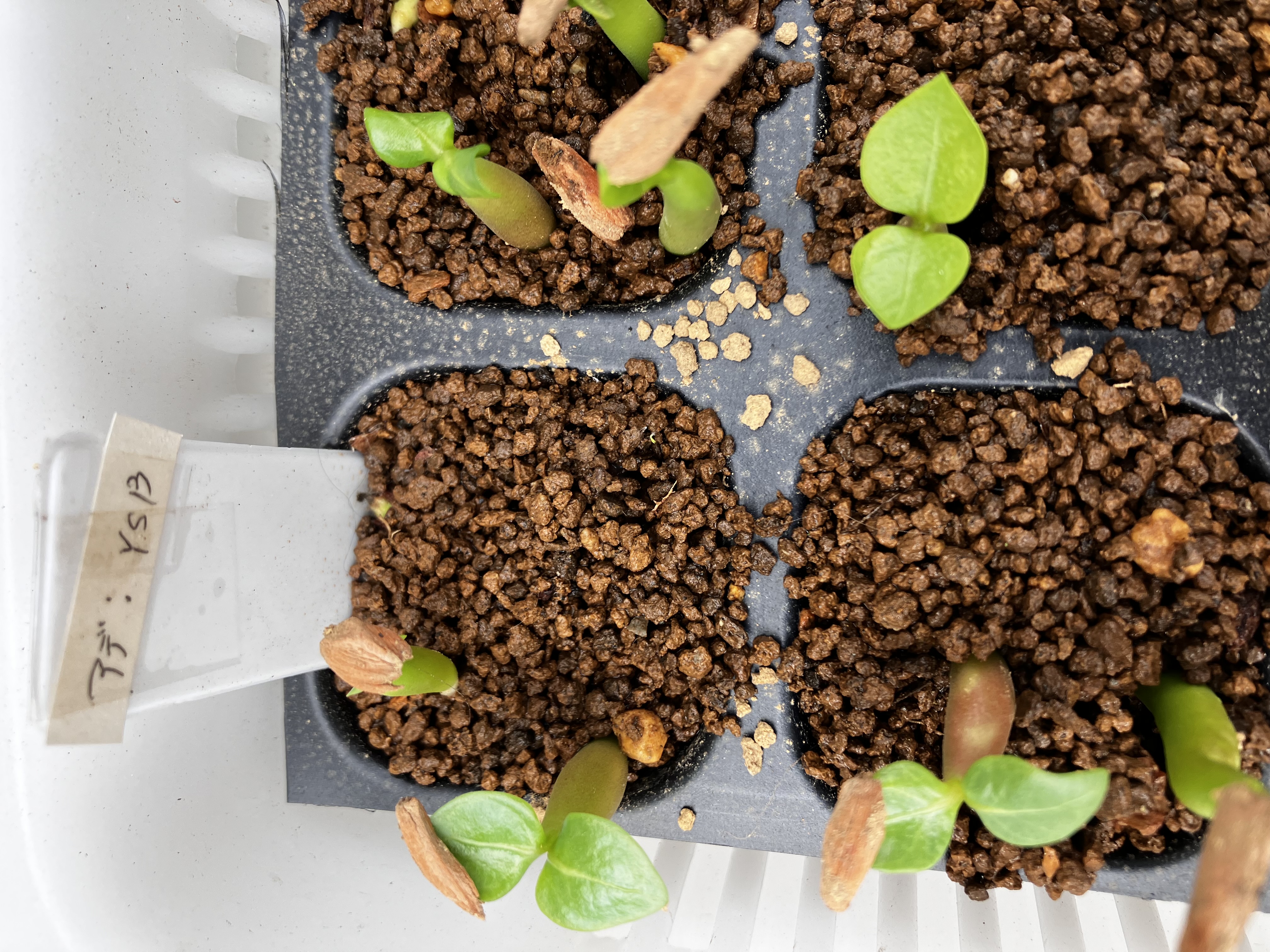 [ 播種日 / 撮影日 ]例: 2025/3/31播種 2025/4/25撮影[ 播種数 / 発芽数 ]例: 23粒/ 10粒[ その他(用土や管理方法など)]例: 播種前にメネデール溶液に1日程度浸漬赤玉メインの用土に細目のバーミキュライトを敷き播種