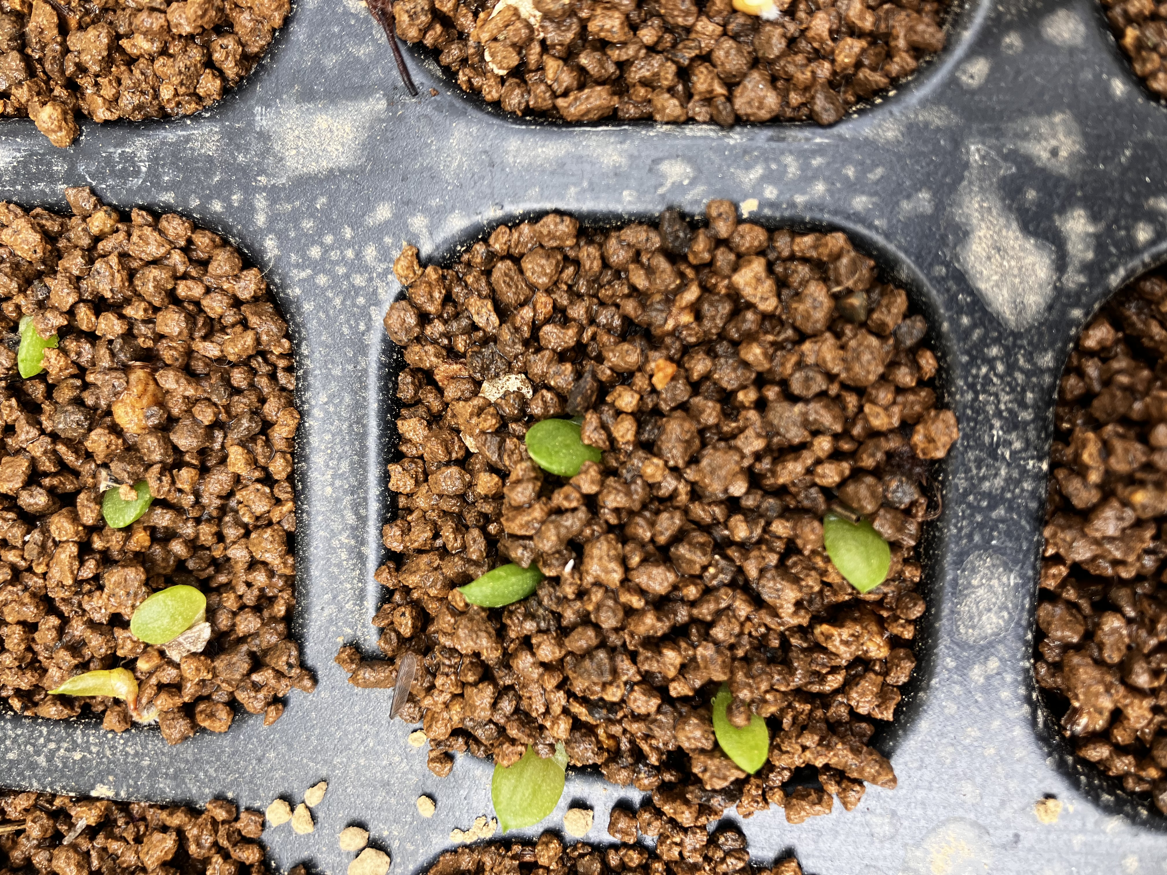 [ 播種日 / 撮影日 ]例: 2025/3/31播種 2025/4/25撮影[ 播種数 / 発芽数 ]例: 24粒/ 12粒[ その他(用土や管理方法など)]例: 播種前にメネデール溶液に1日程度浸漬赤玉メインの用土に細目のバーミキュライトを敷き播種