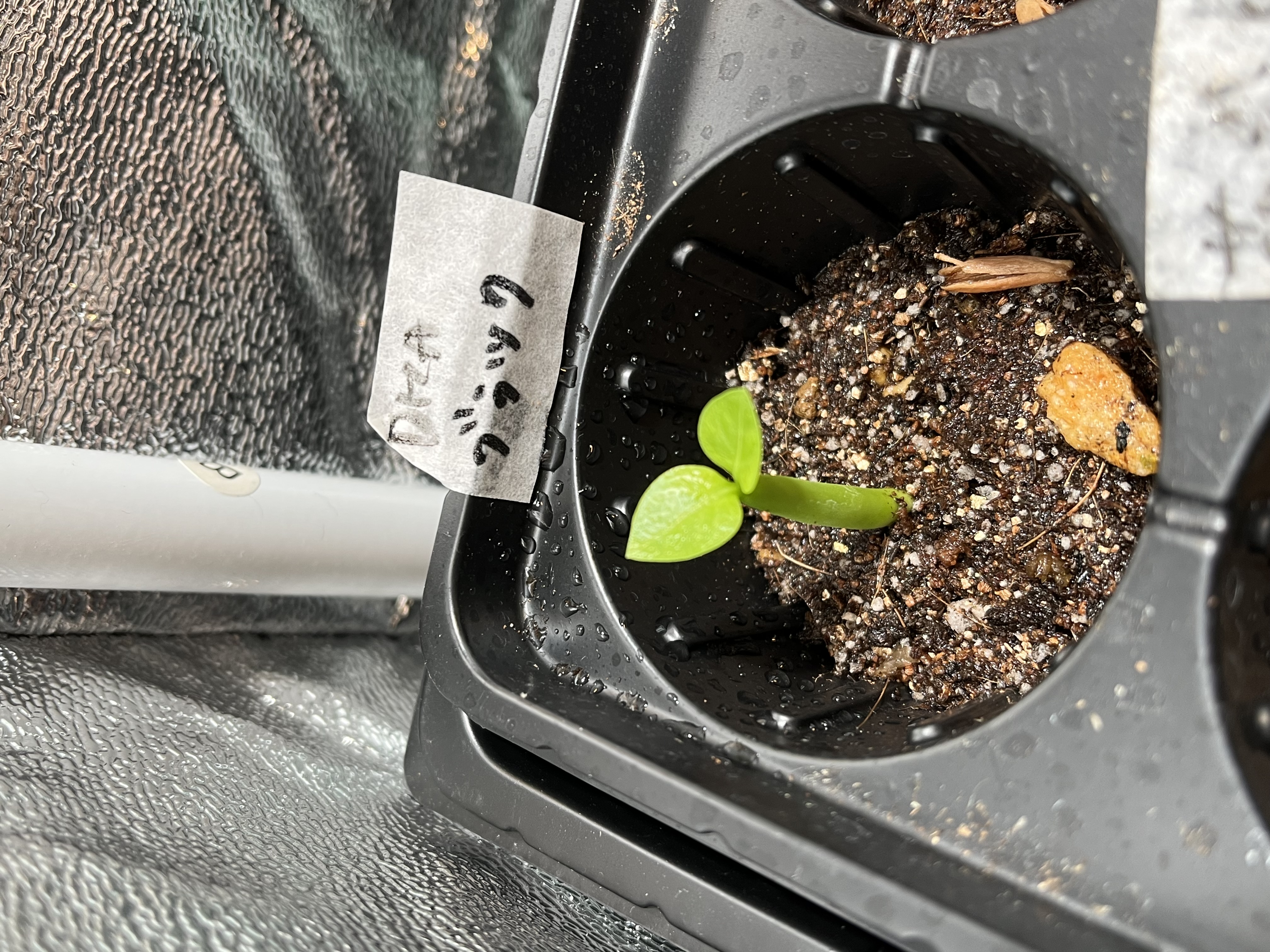 [ 播種日 / 撮影日 ]2025/4/6播種 2025/4/26撮影[ 播種数 / 発芽数 ]6粒/ 6粒[ その他(用土や管理方法など)]・播種前にメネデール+ベンレートに1日浸水