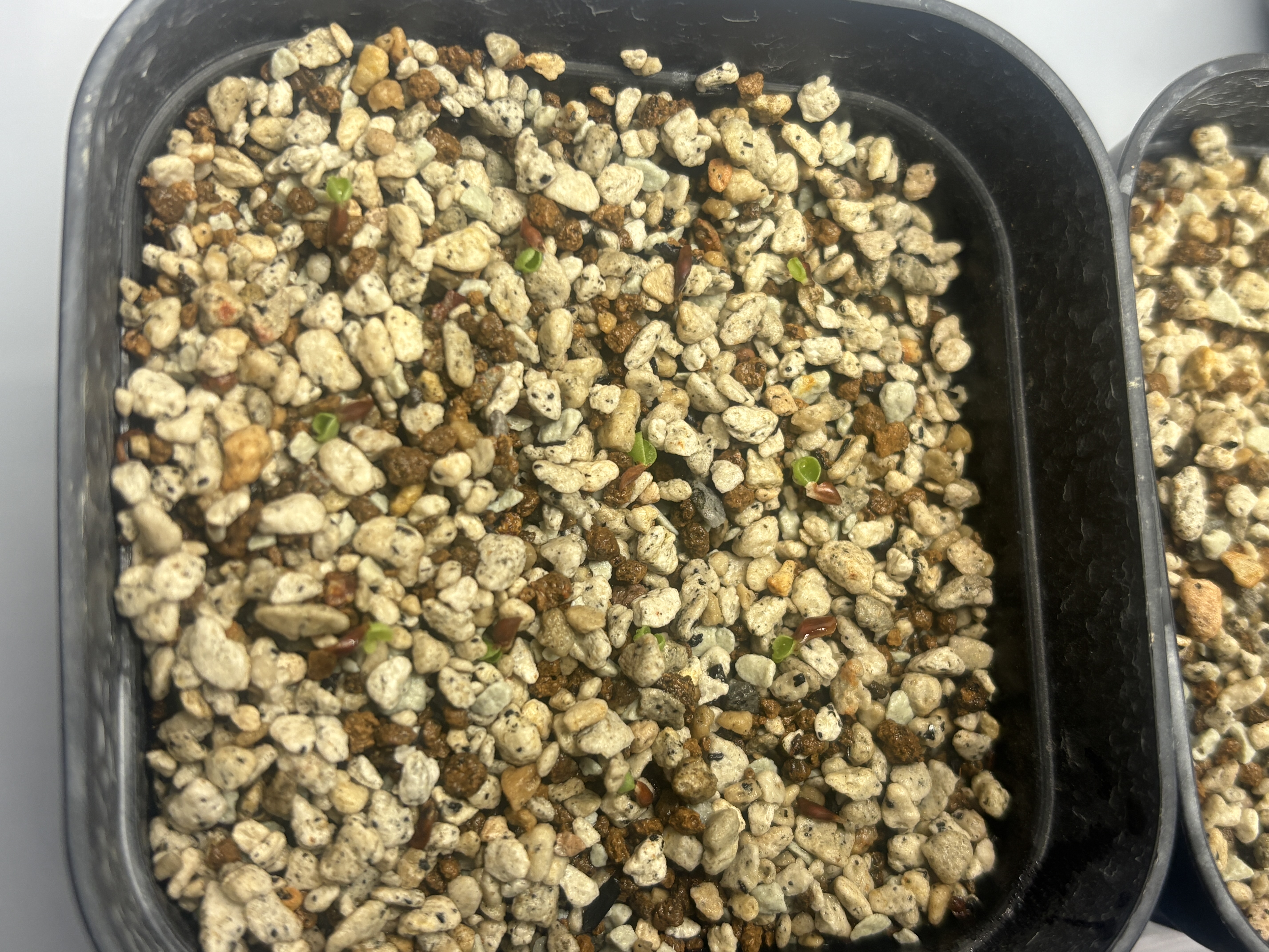 [ 播種日 / 撮影日 ]例: 2025/4/22播種 2025/4/27撮影[ 播種数 / 発芽数 ]例: 12粒/ 11粒