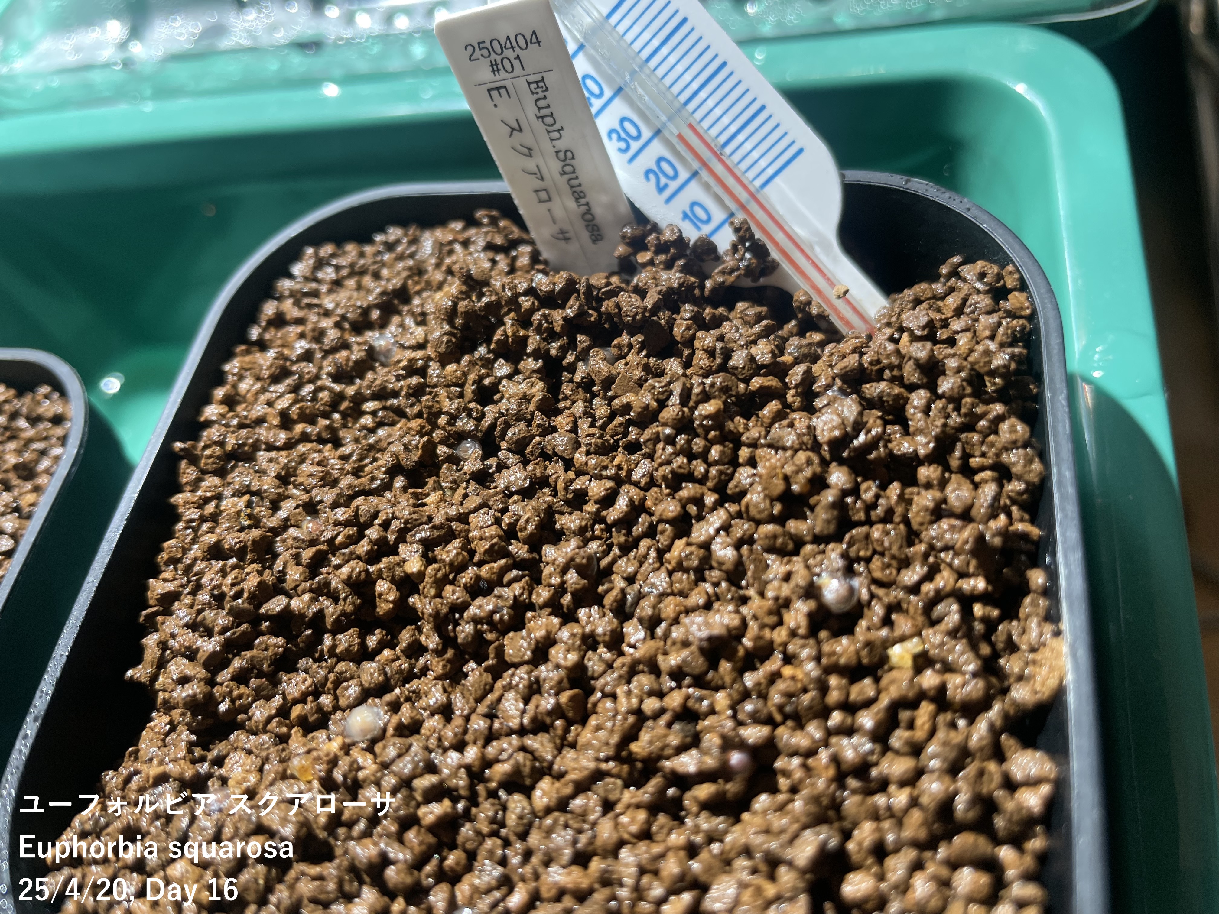 25/4/5 赤玉単用土に播種。腰水、加温あり、蓋あり