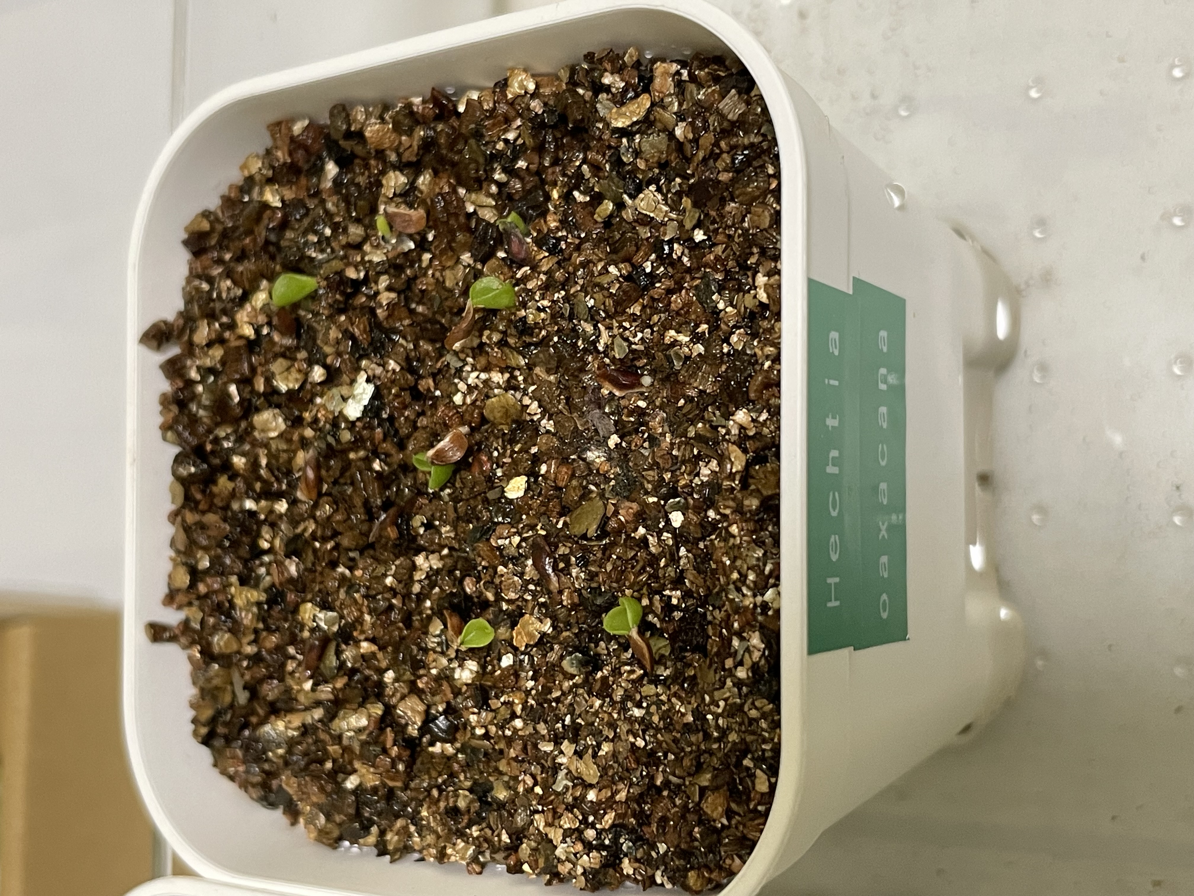 2025/4/19播種 2025/4/26撮影[ 播種数 / 発芽数 ][ その他(用土や管理方法など)]播種前にダコニール+メネデール溶液に約10時間浸漬。下層日向土、中層赤玉、上層バーミキュライトを敷き、念のため熱湯殺菌後播種。