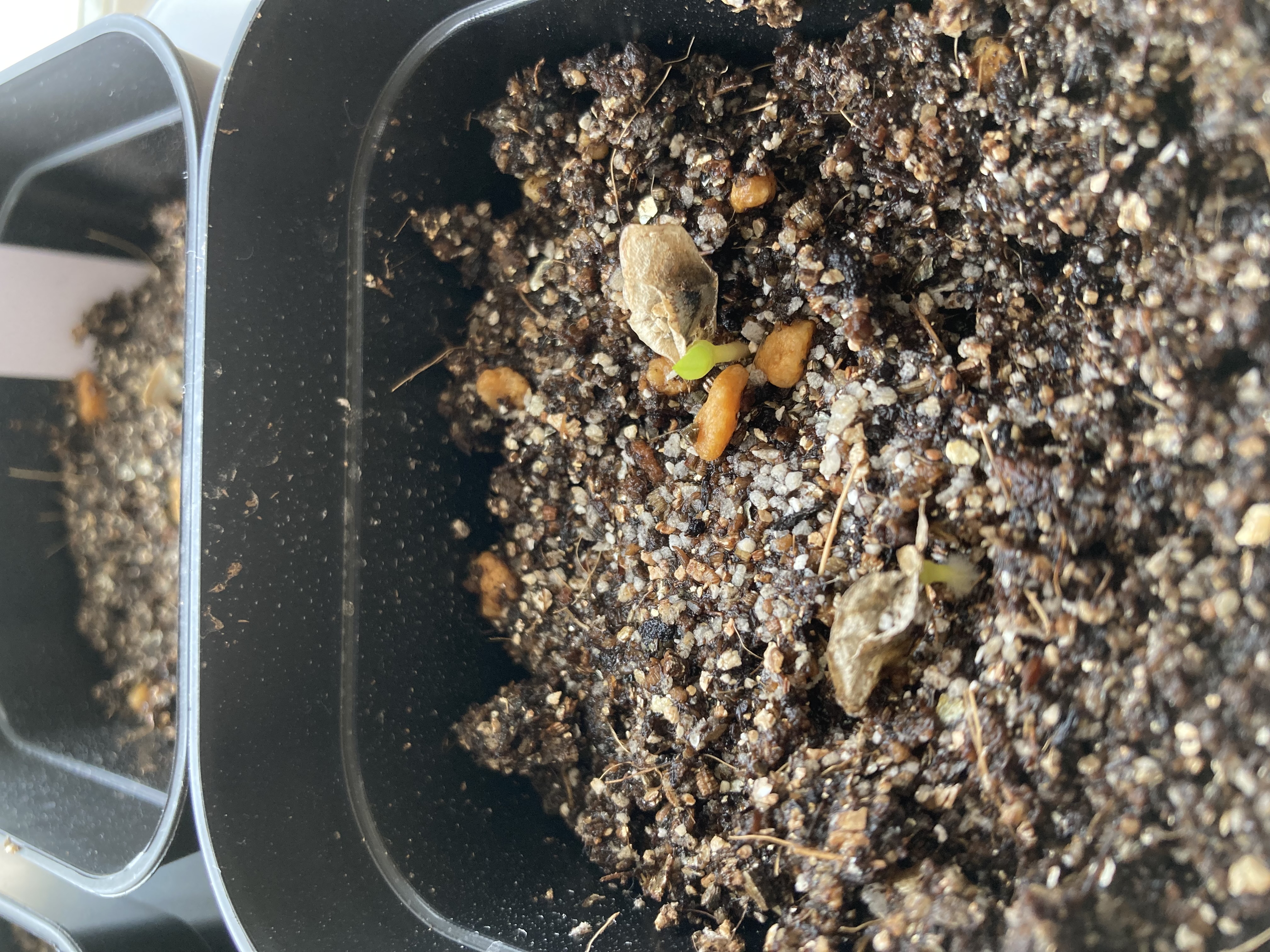 [ 播種日 / 撮影日 ]一週間前後[ 播種数 / 発芽数 ]12粒/ 6粒[ その他(用土や管理方法など)]播種前にベンレート+メネデール溶液に1日程度浸漬