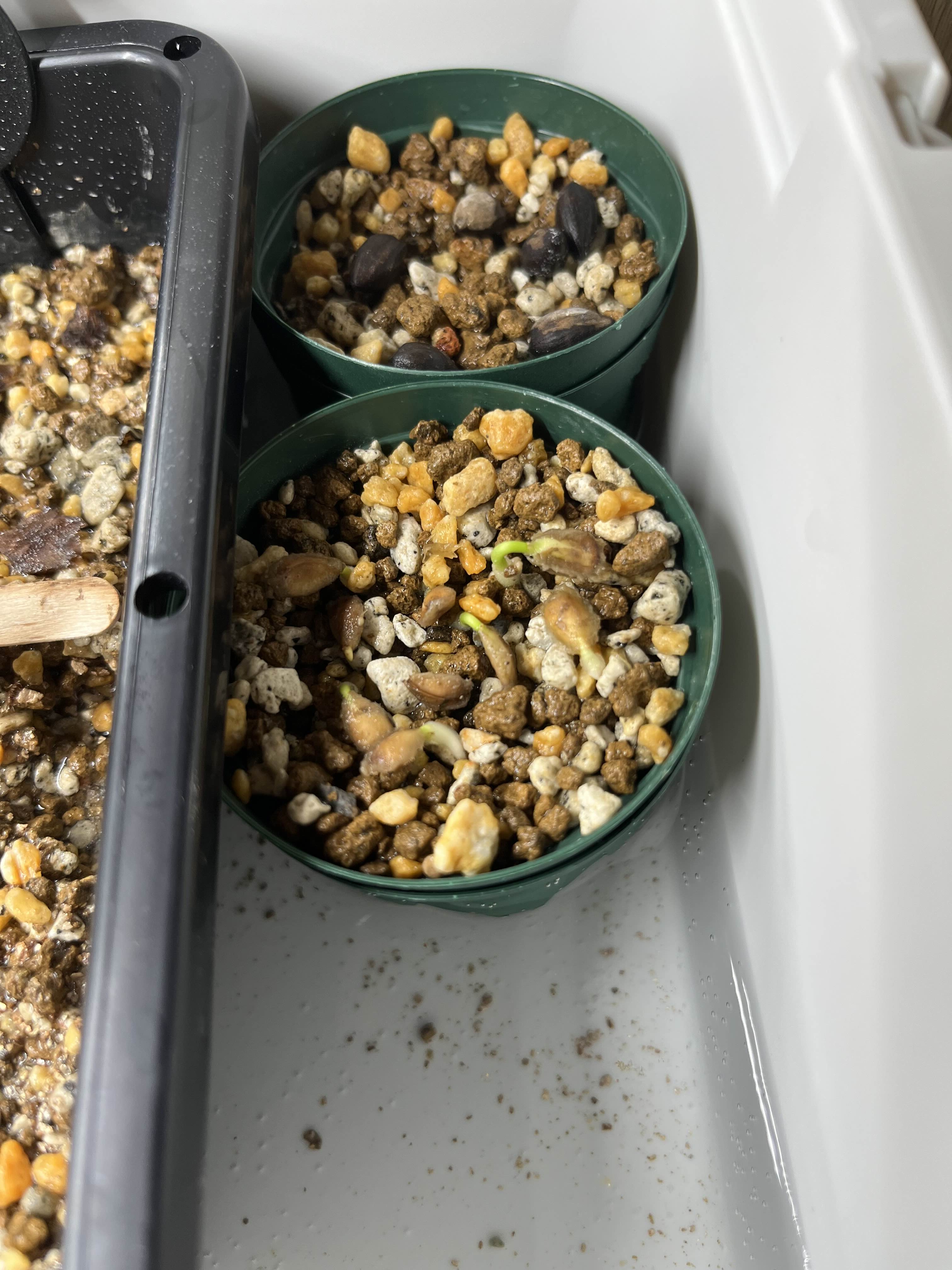 種子と比べると少しだけ土の粒の方が大きいが問題なく発芽した。