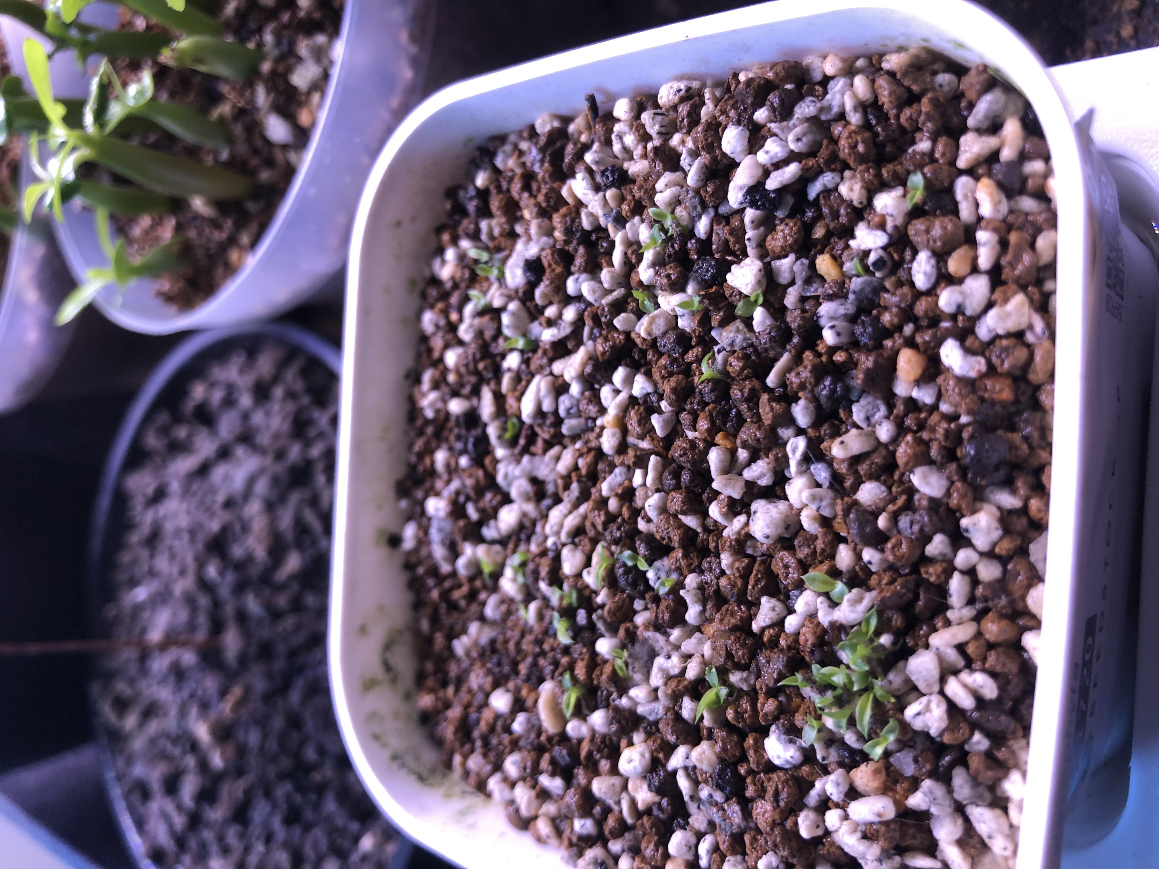 ベンレートとメネデールを入れた水に2時間浸水。赤玉細粒を入れた鉢(腰水)に種を置いてラップで保湿し室内保管。