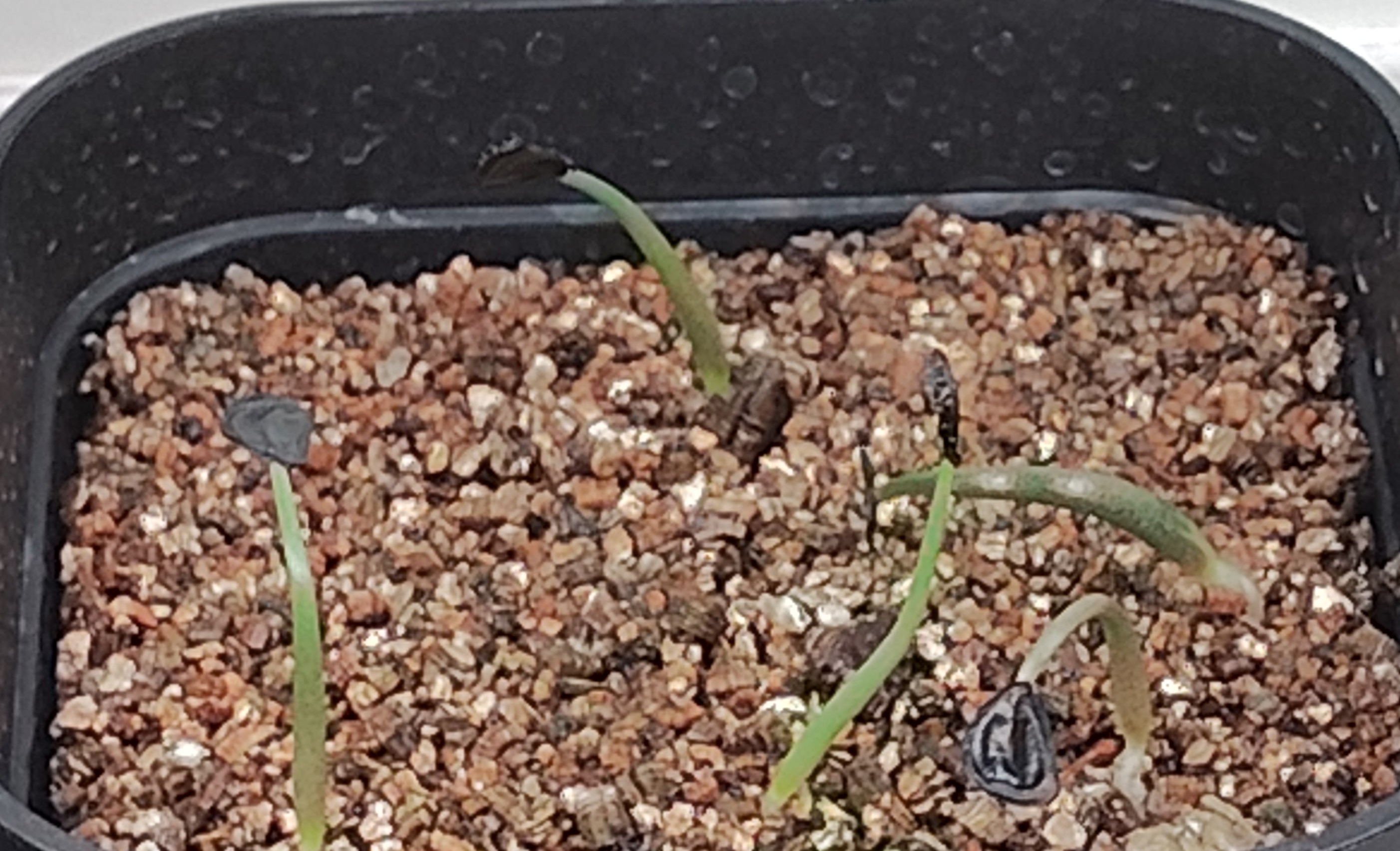 また、種が大きく乾燥しがちなのでキッチンペーパーなどで湿潤に保ち、発芽したものから用土に植えていくといいかもしれません。