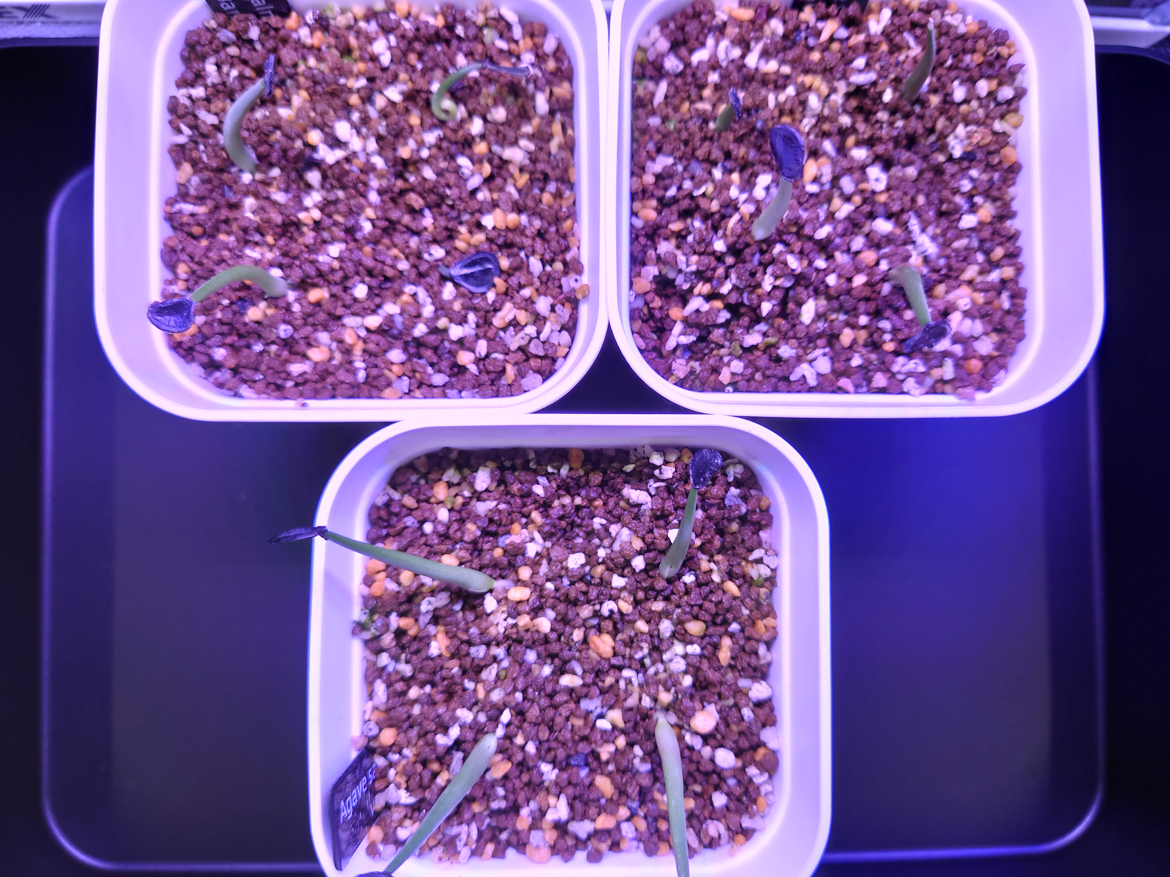 赤玉メインの用土に細目の赤玉土、鹿沼土、軽石を敷き播種、室内、LED、加温有り、ラップで密閉、20度〜25度で管理、1週間しても発根しなかったので、プラコップに水を含ませたキッチンペーパーを敷いて播種、発根した種から土に戻した。