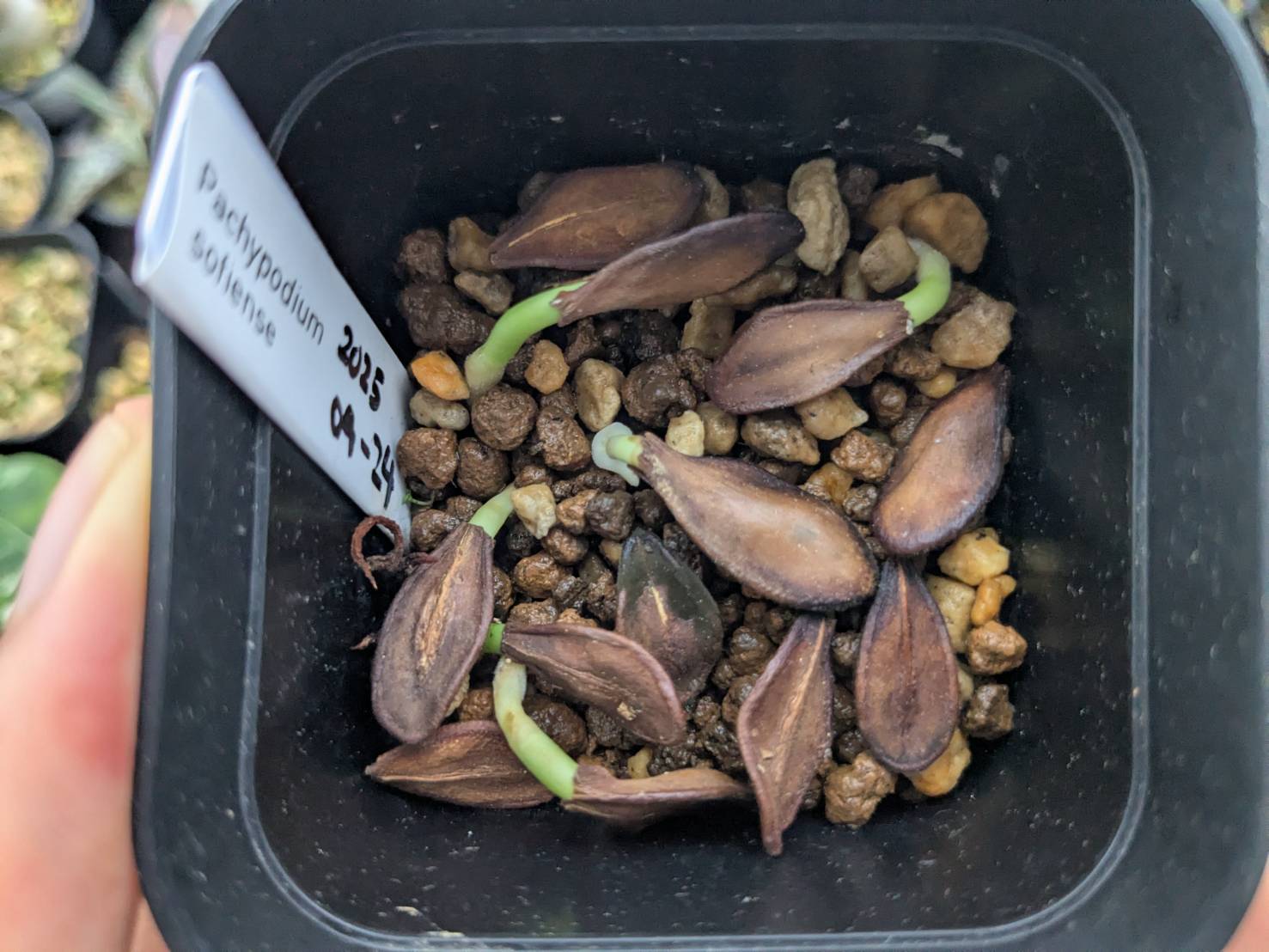 一日水につけて翌日に播種。先端を削りました。屋外においておき、約一ヶ月で発芽しました。ここ数日の高温で、まだ発芽しそうです。