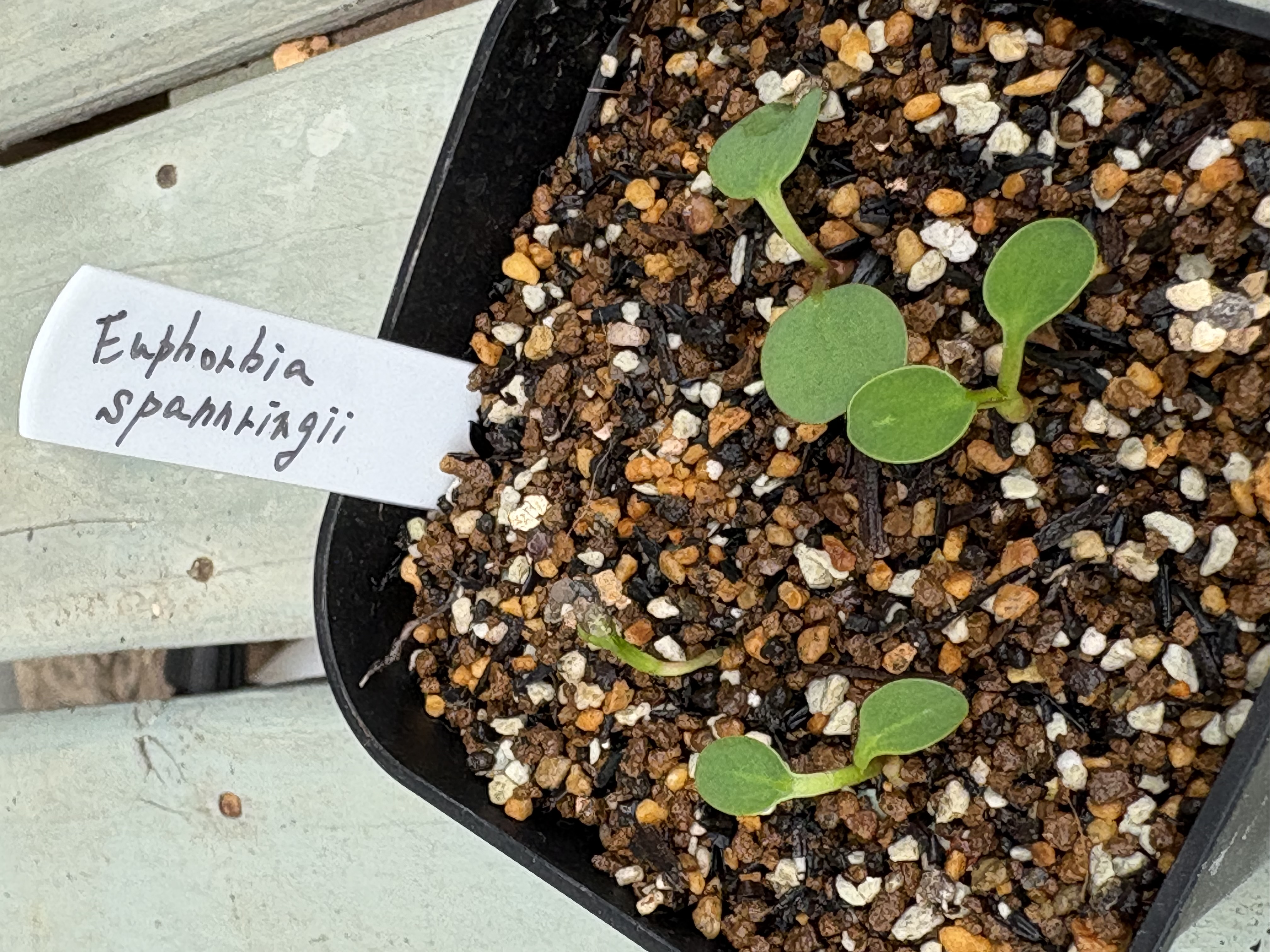 2025/5/9播種 2025/5/23撮影[ 播種数 / 発芽数 ] 12粒/ 4粒[ その他(用土や管理方法など)]播種前にベンレート+メネデール溶液に1日程度浸漬半分は湿らせたキッチンペーパーに播種しラップで密閉