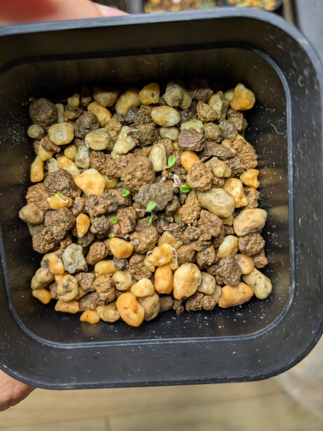 屋内LEDで管理。播種前は一晩水につけたのみ。カビなど生えませんでした。