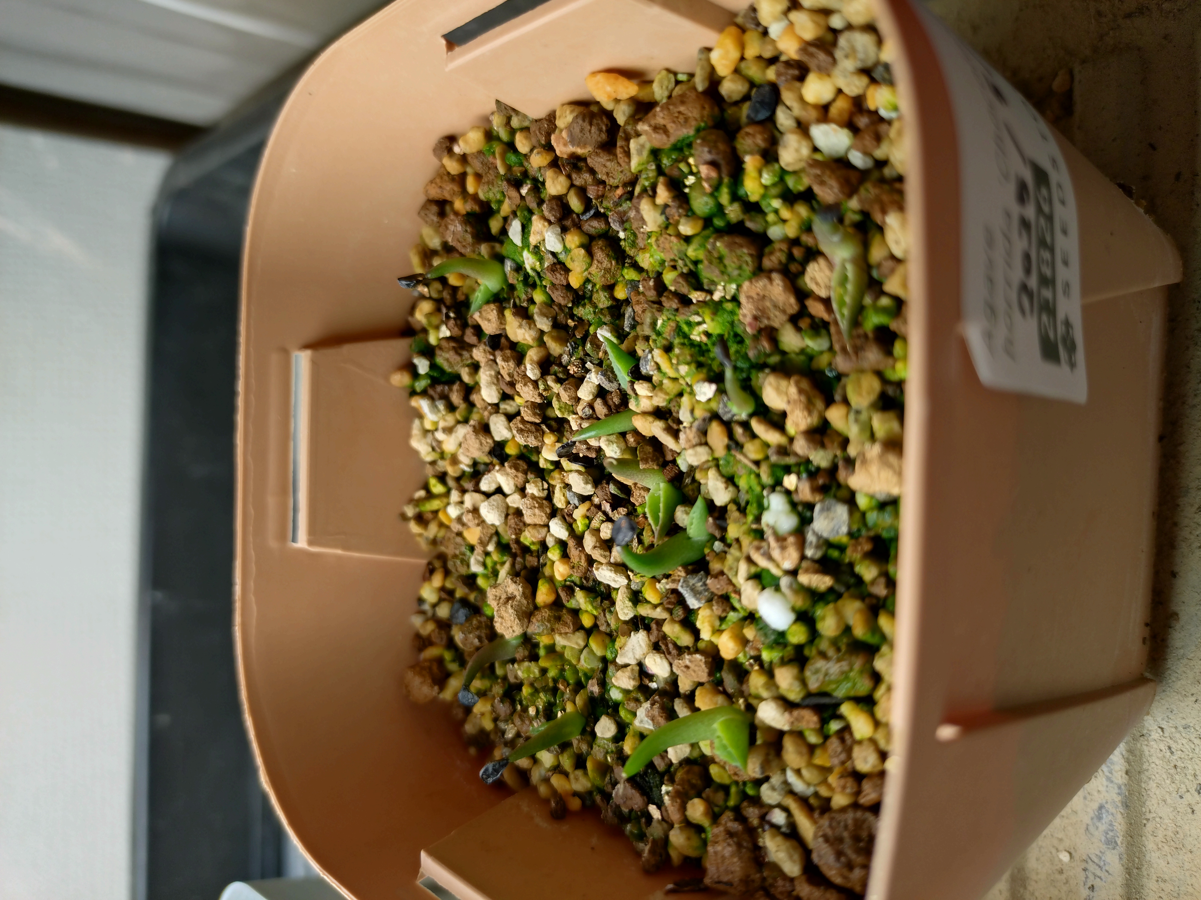 赤玉日向メインの用土に播種、20度〜25度で管理
