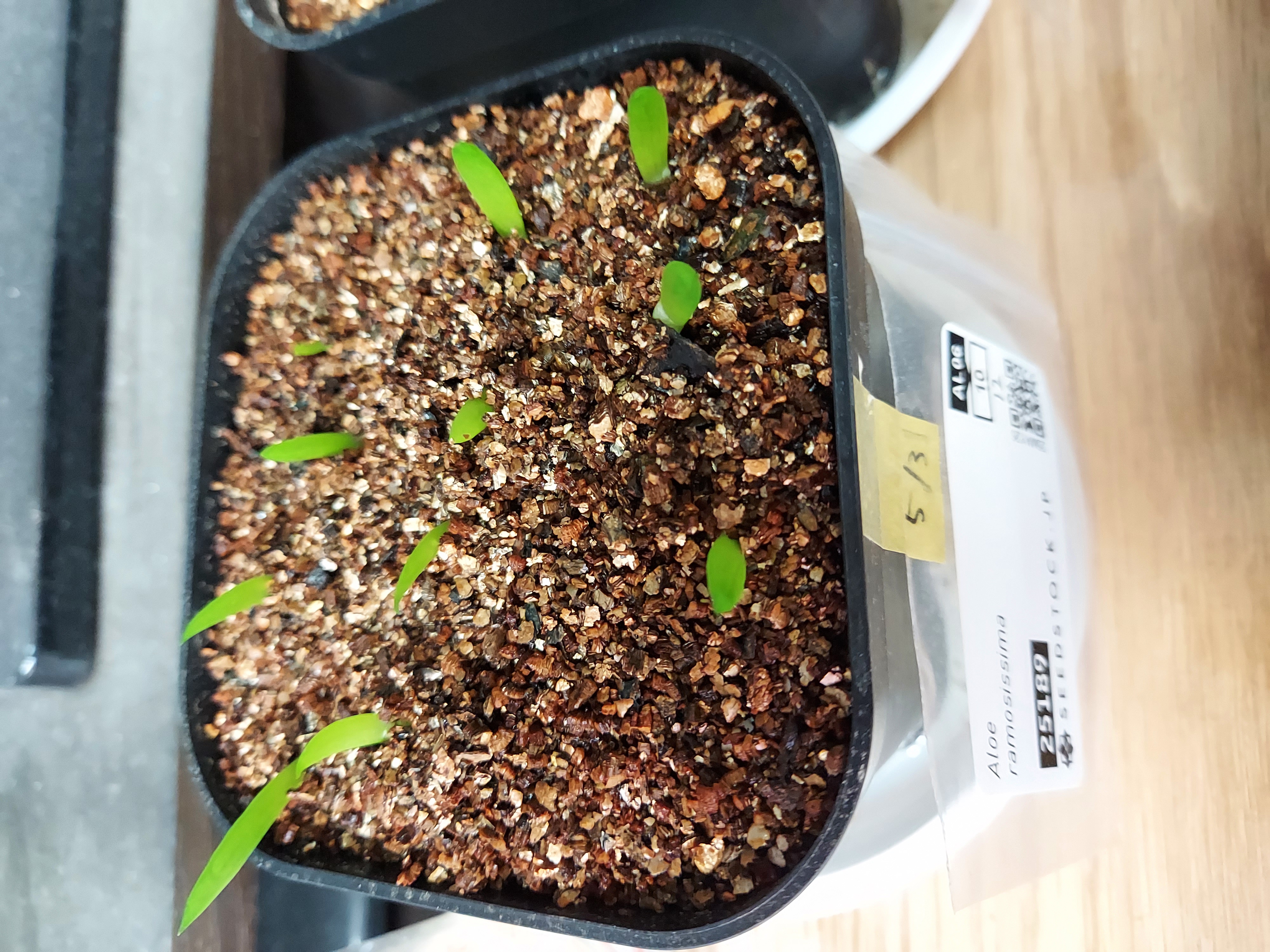ダコニールとメネデールの希釈水に24時間浸し、プレステラ105の鉢に軽石を敷き、多肉植物用土を7割いれて、その上に種を置き、バーミキュライトを被せました。