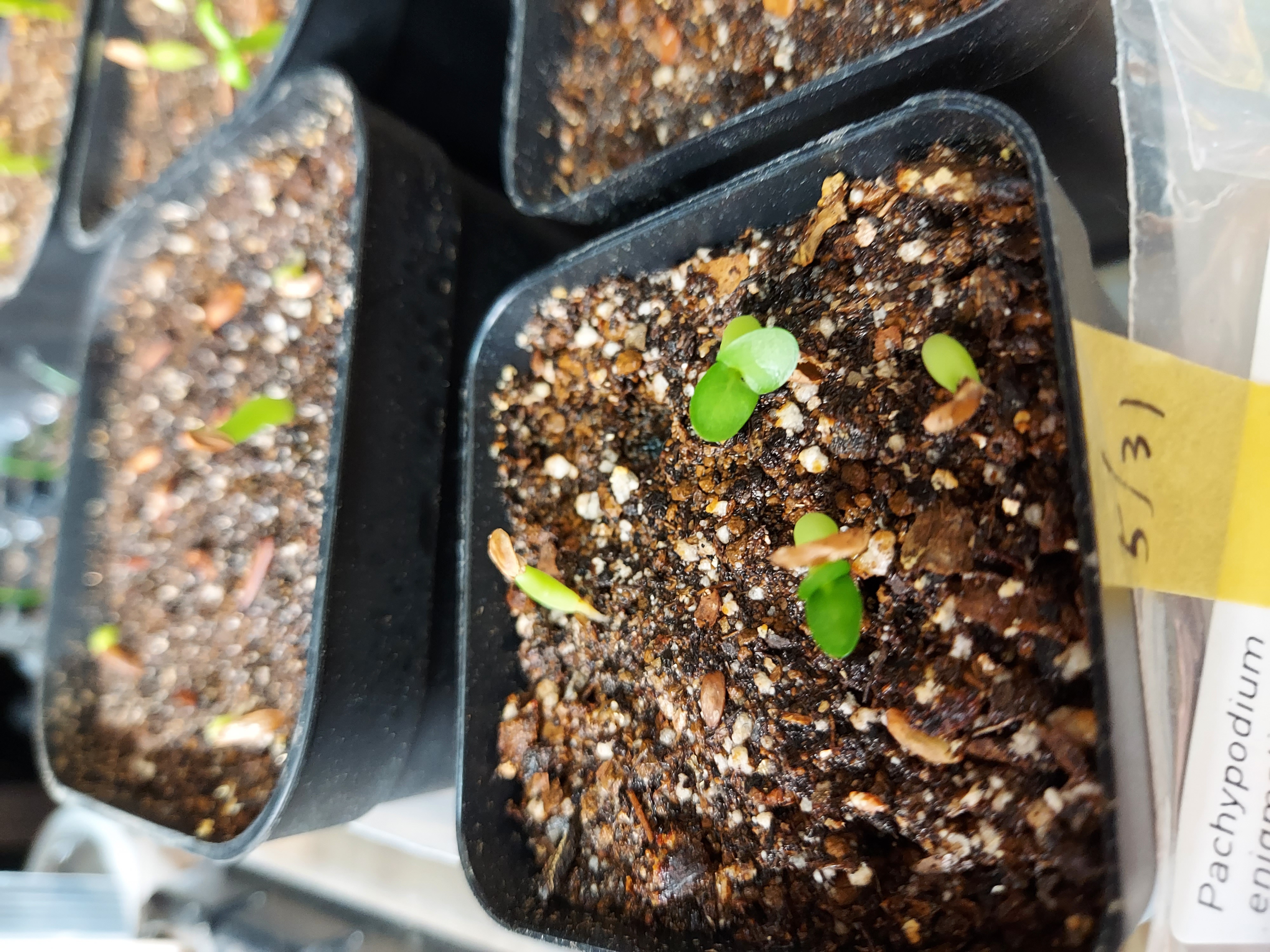 ダコニールとメネデールの希釈水に24時間浸し、プレステラ75の鉢に軽石を敷き、多肉植物用土を7割いれて、その上に種蒔き用の用土を敷き、その上に種を置きました。