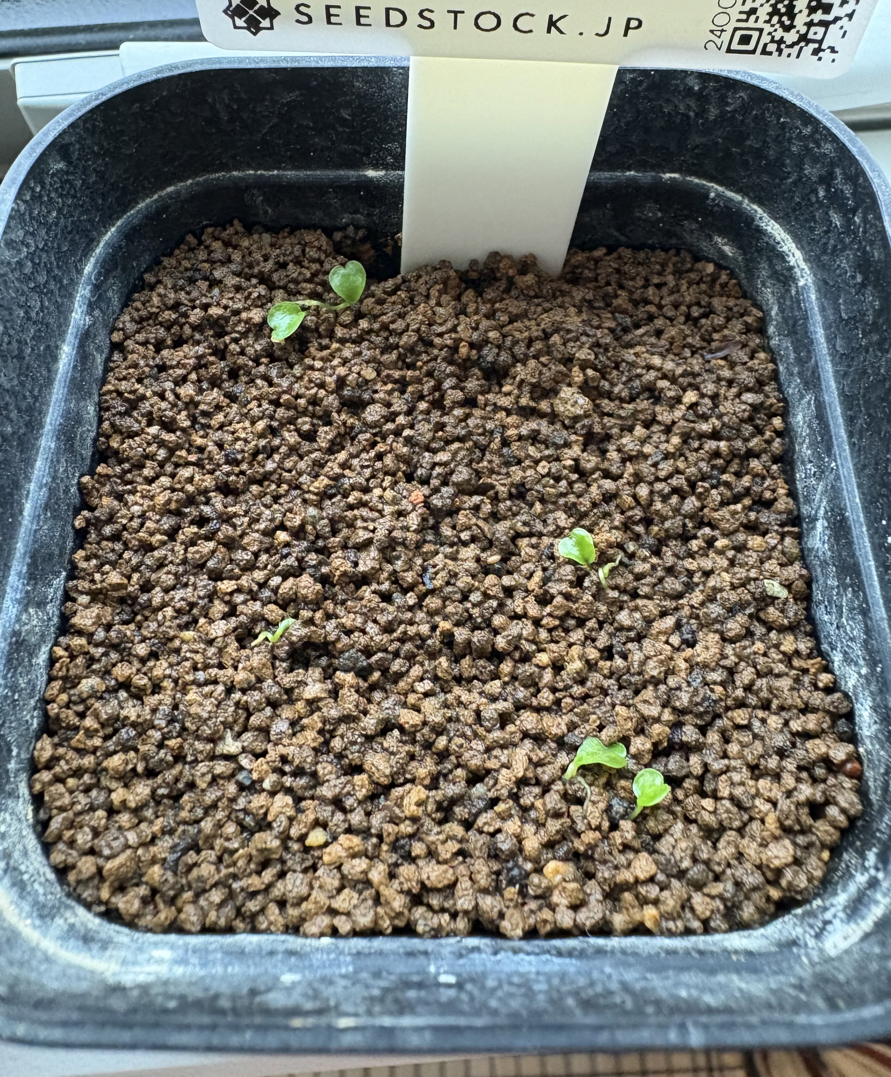 [ 播種日 / 撮影日 ]2025/5/7播種 2025/6/11撮影[ 播種数 / 発芽数 ]10粒/ 3粒[ その他(用土や管理方法など)]赤玉(細粒)の用土に播種、20度〜25度で管理