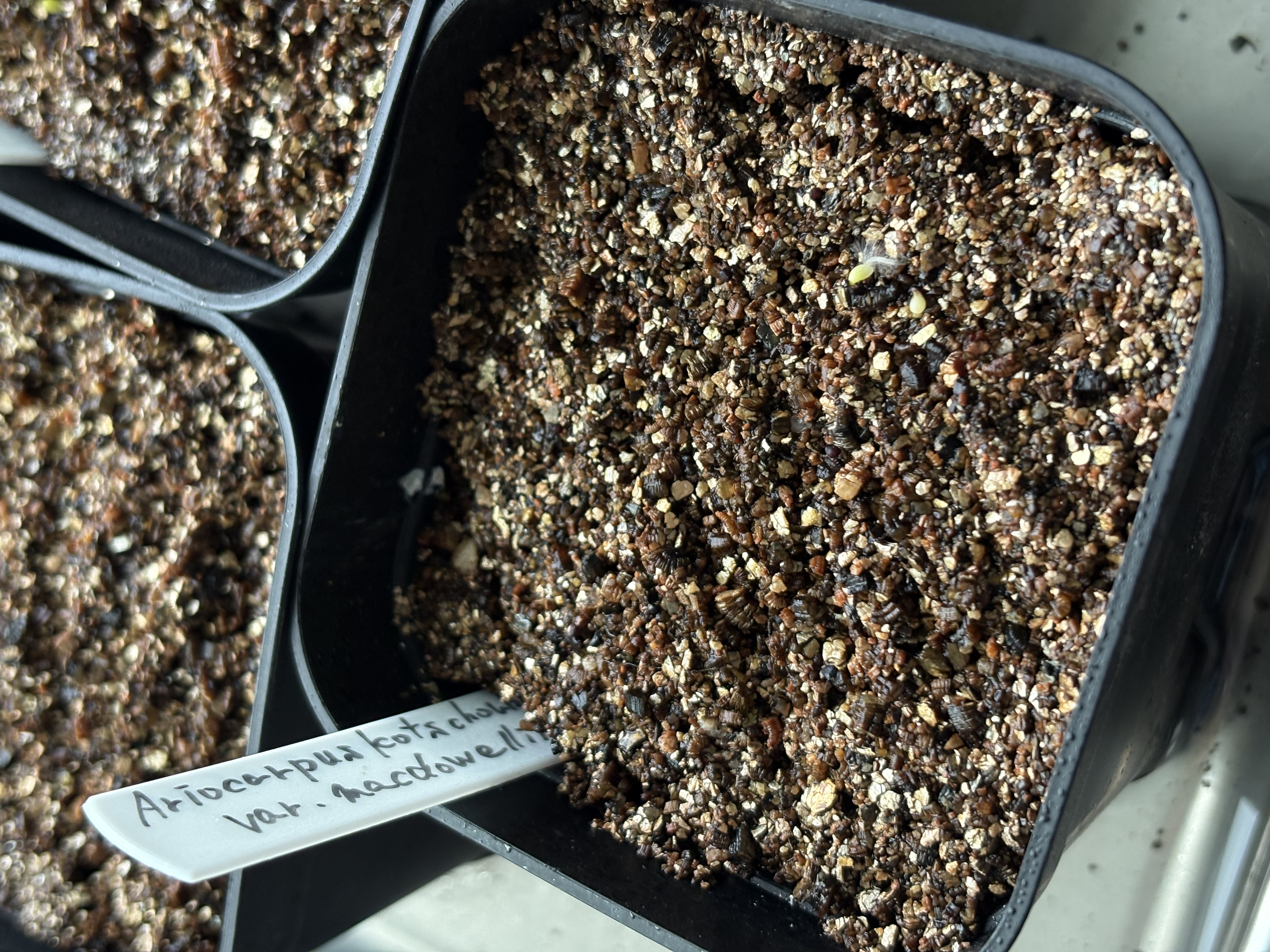 用土は赤玉と桐生砂、表面はバーミキュライトを被せた、蒔く前に熱湯で殺菌