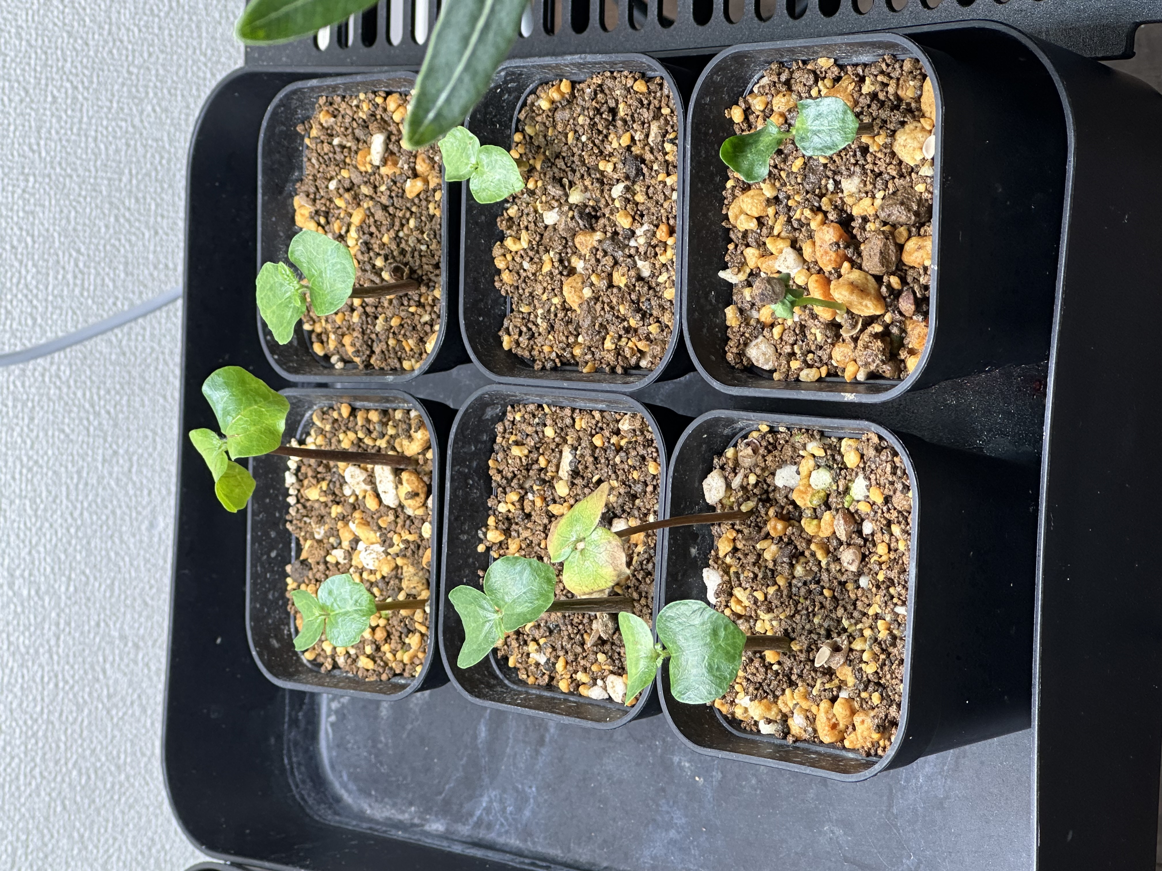 5月18日に播種、6月13日現在、24粒中9粒発芽。