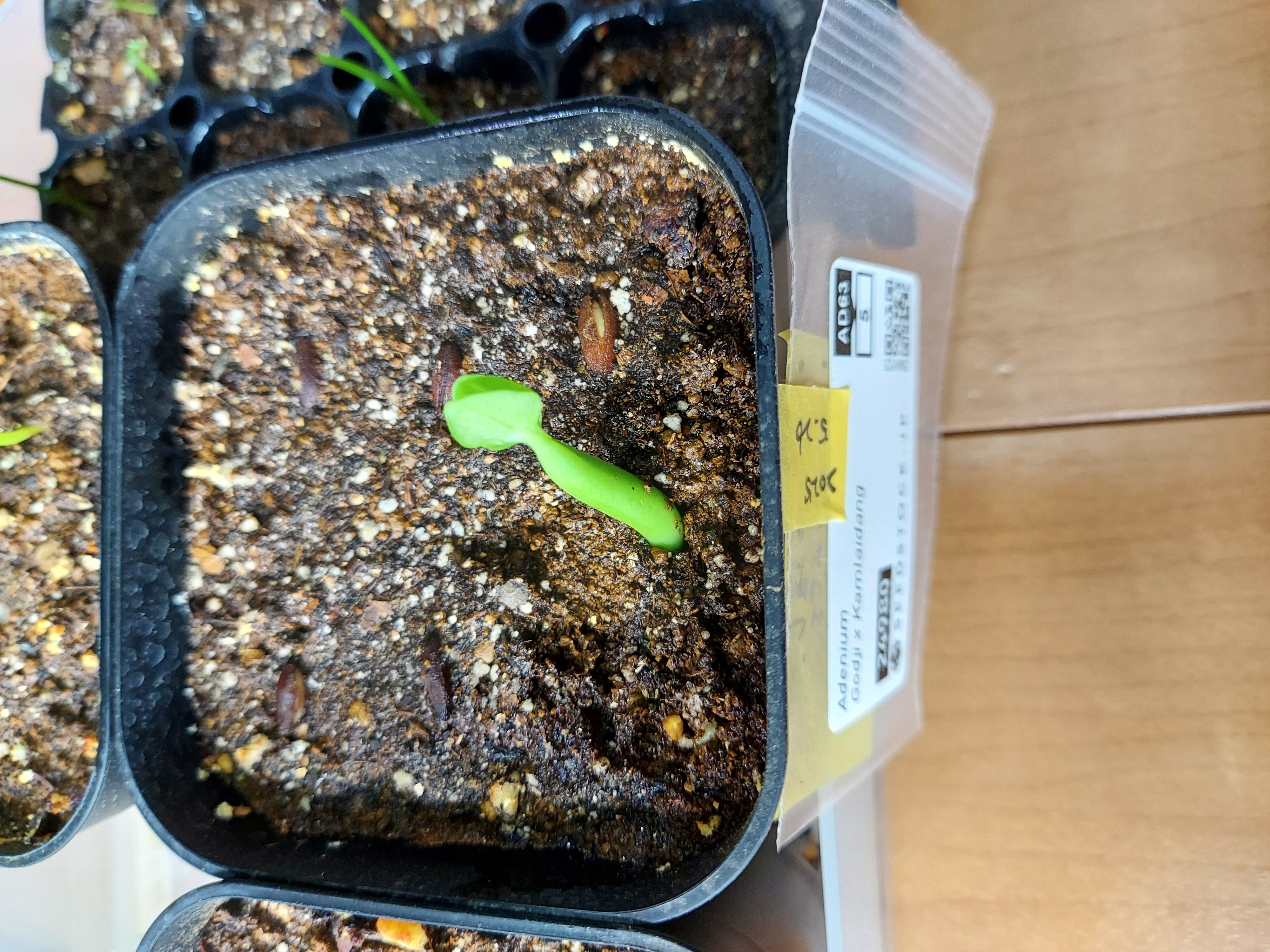 用土は多肉植物用土を7割敷き上に種蒔き用用土を敷き種を置きました。