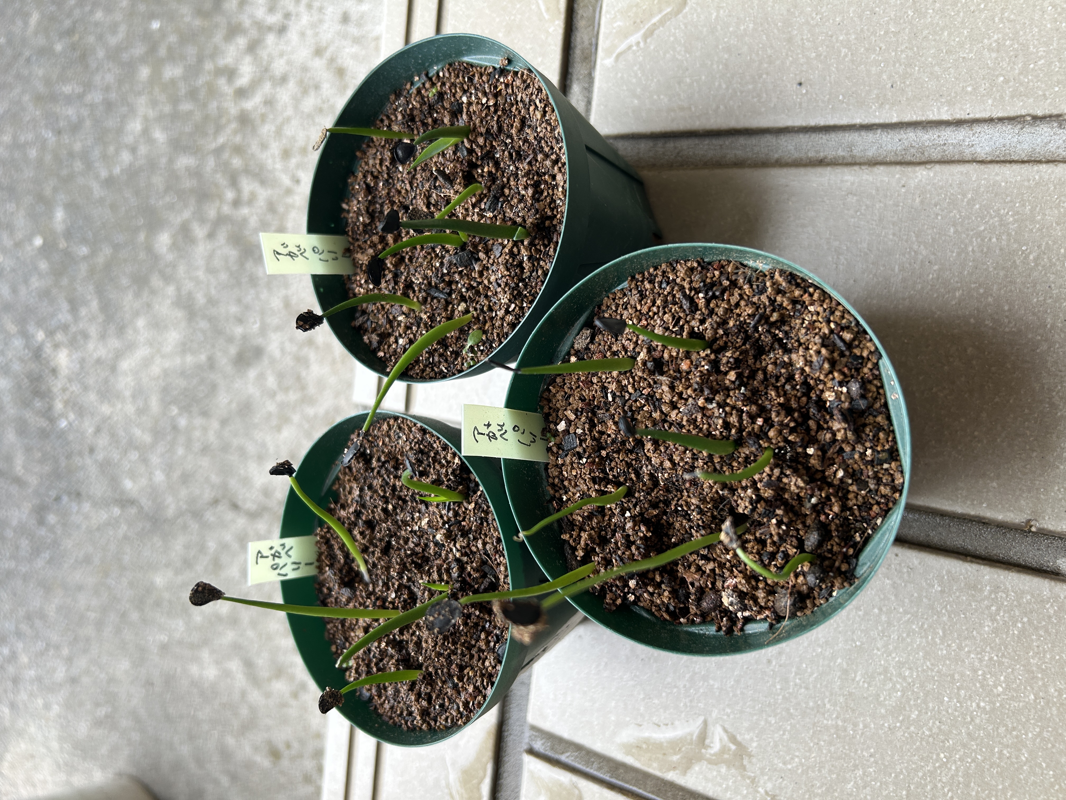 用土は鹿沼土、赤玉土、日向土、ゼオライト、バーミキュライトをMIXしたものを、SEED STOCKのホームページを参考に、下部に中粒、表層は細粒を使用し播種。