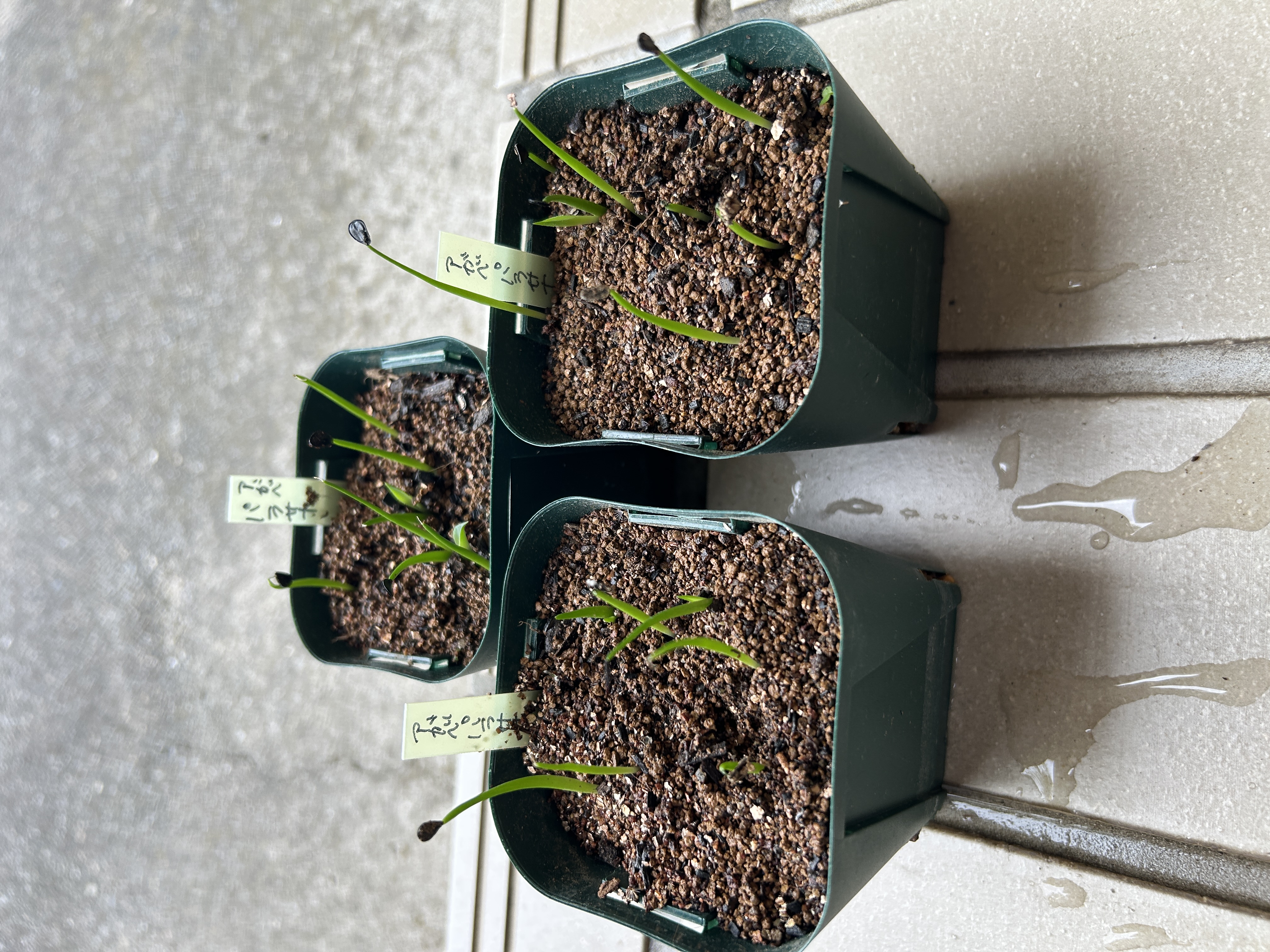 用土は鹿沼土、赤玉土、日向土、ゼオライト、バーミキュライトをMIXしたものを、SEED STOCKのホームページを参考に、下部に中粒、表層は細粒を使用し播種。