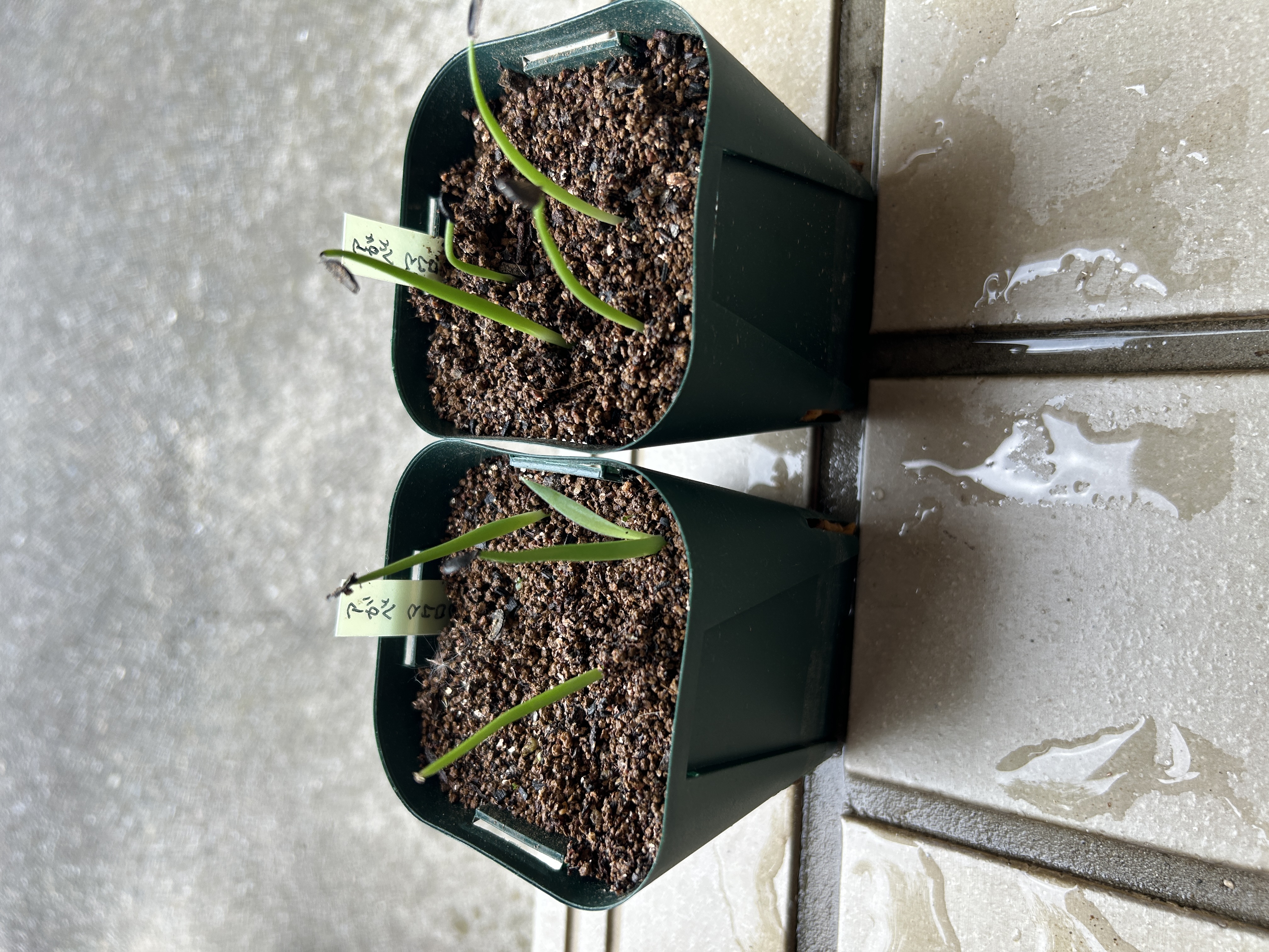 用土は鹿沼土、赤玉土、日向土、ゼオライト、バーミキュライトをMIXしたものを、SEED STOCKのホームページを参考に、下部に中粒、表層は細粒を使用し播種。