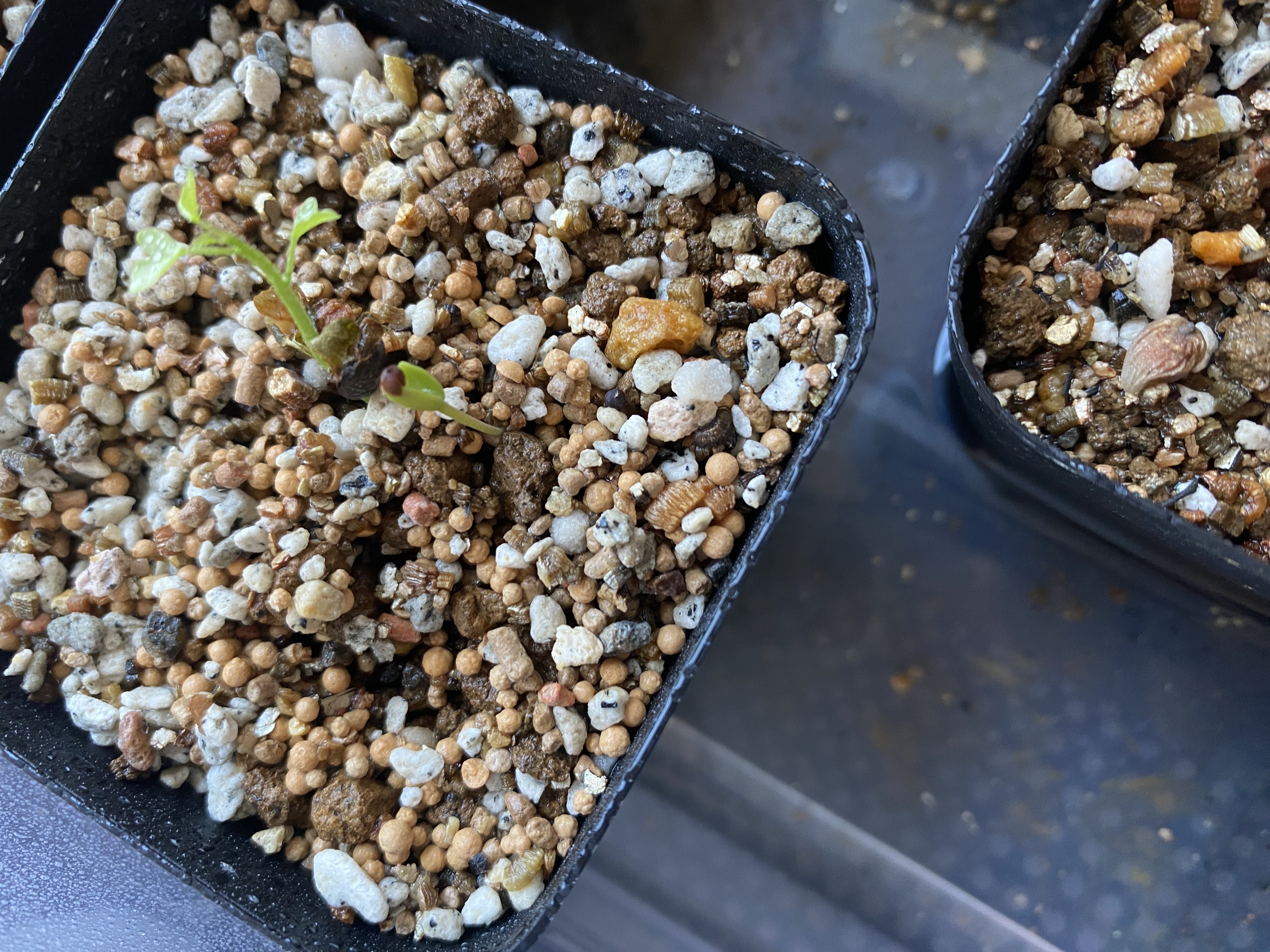 そのため、写真には2つ発芽していますが一つは全くの別の品種になります。