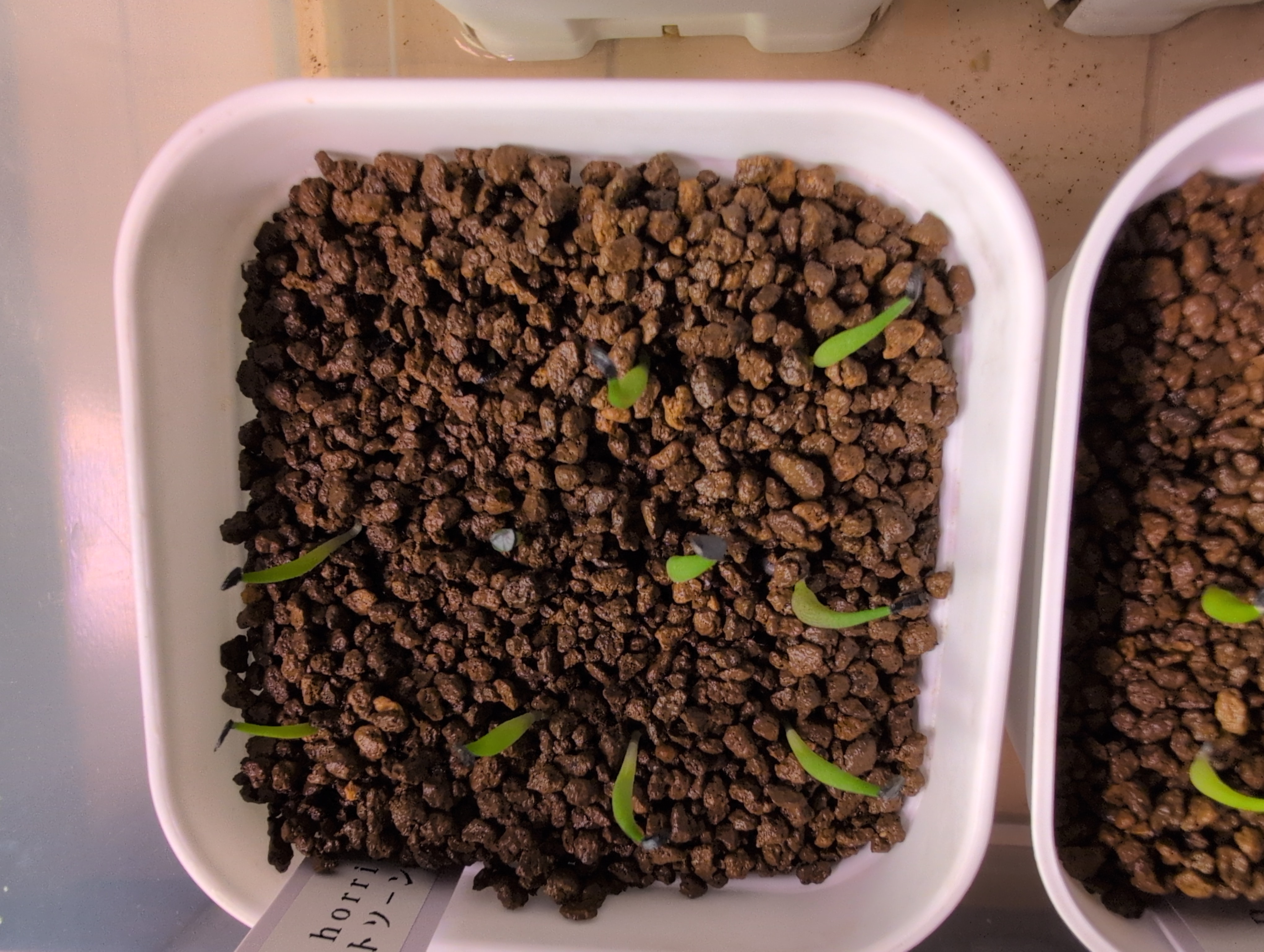 播種日 / 撮影日 ]2025/6/8播種 2025/6/18撮影[ 播種数 / 発芽数 ]12粒/ 11粒[ その他(用土や管理方法など)]播種前にダコニール+メネデール溶液に1日程度浸漬赤玉細粒の用土に播種、25度〜30度で管理