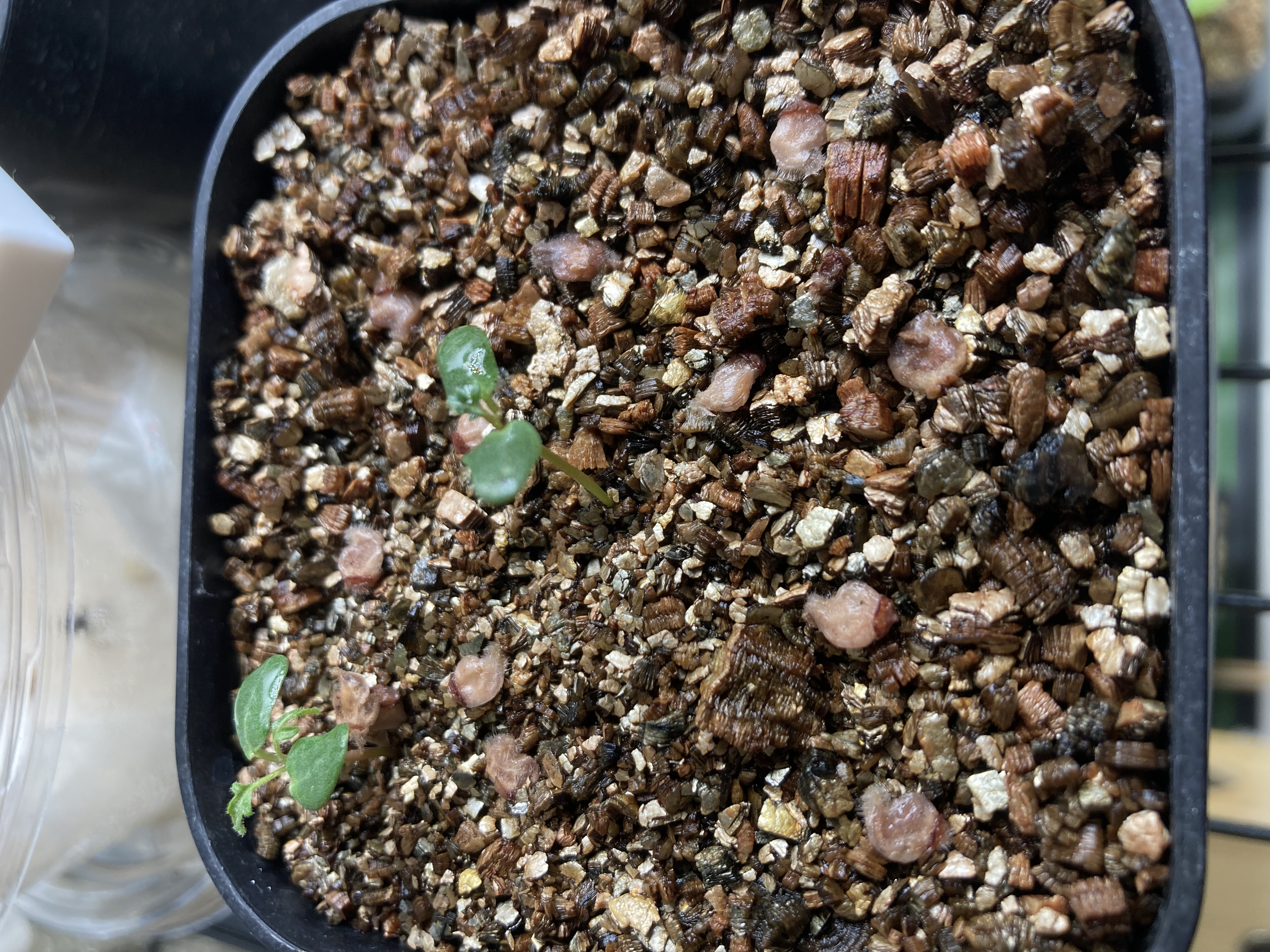 播種翌日に2つ発芽。その後止まっていますが待ちます。