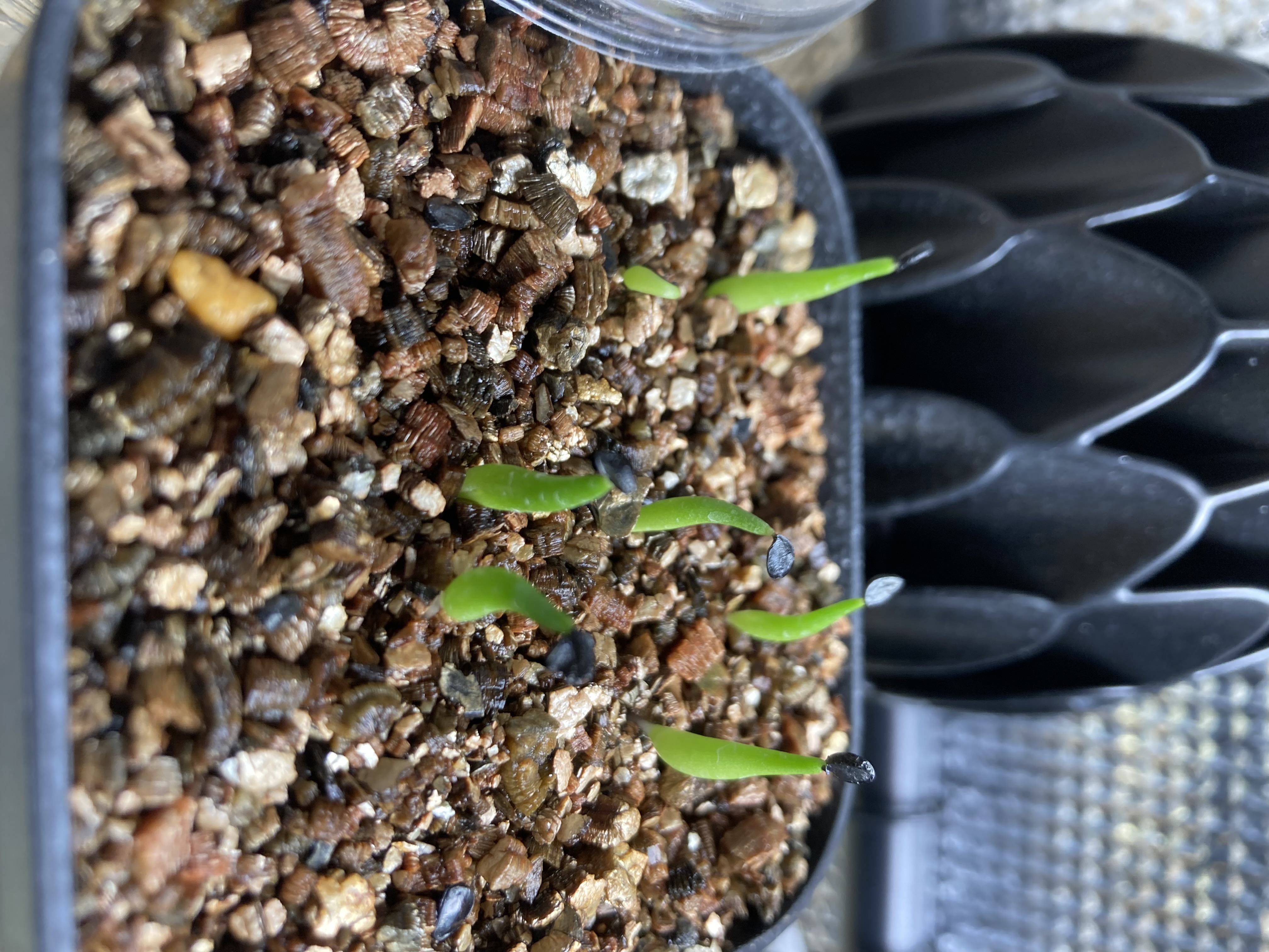 播種前にオーソサイド+メネデール溶液に半日程度浸漬赤玉メインの用土に細目のバーミキュライトを敷き播種、反日影で管理。